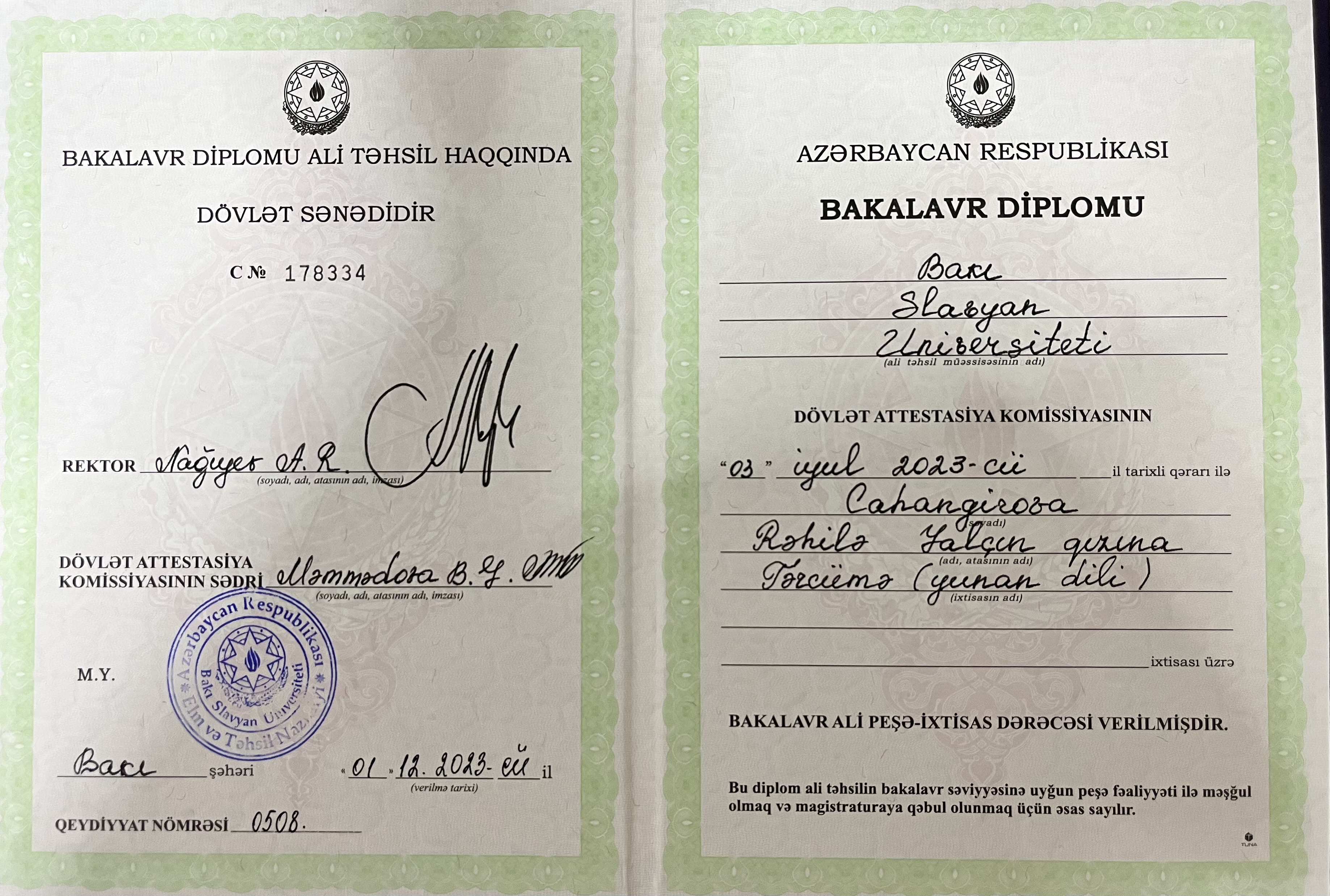 Bakı Slavyan Universiteti-Tərcümə(Yunan dili) bakalavr