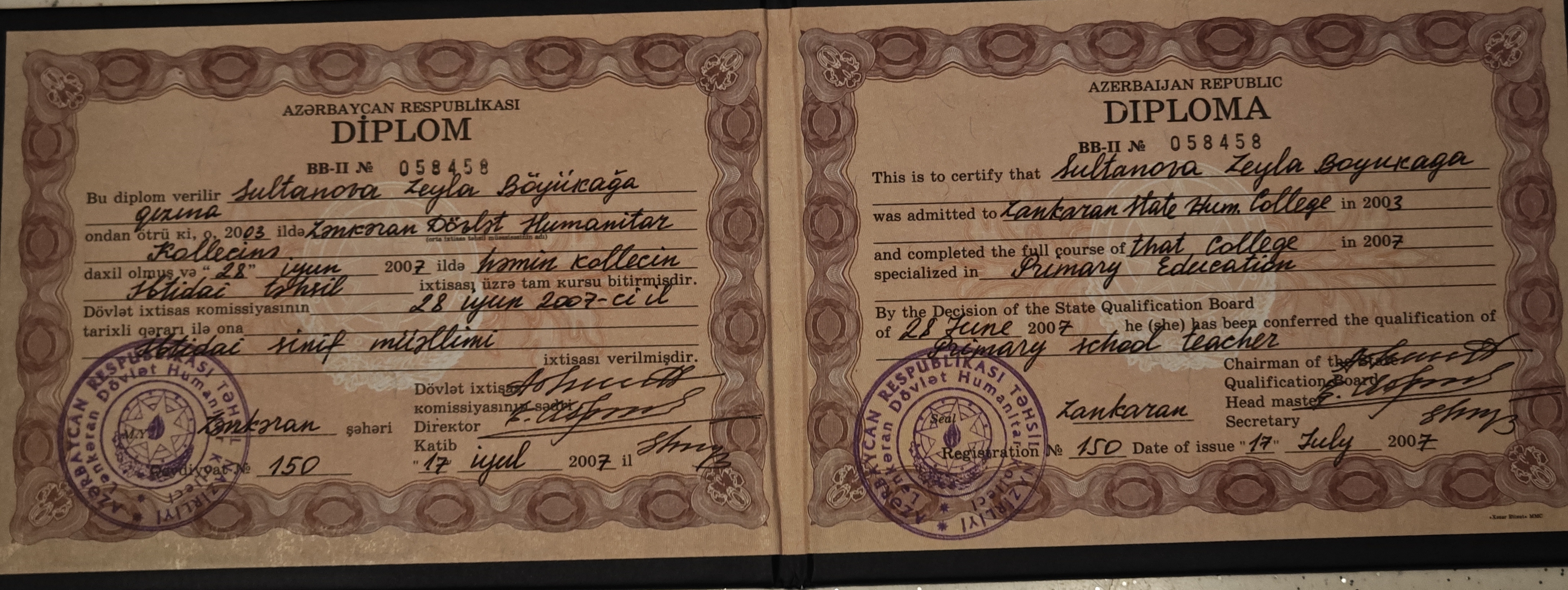 Я педагог с 1999 года (два пед/обр).Работала в ср/шк (15 лет), так же во многих государственных образовательных учреждениях. Моя сфера деятельности заключается в ниже перечисленных. 1. Начальные классы (1-4) 2. Старшие классы (5-8) рус/ сектор. 3. Старшие классы (5-11) азерб/сектор. 4. Подготовка (азерб/гр) 9 и 11 кл. к выпускным экзаменам. 5. Русс