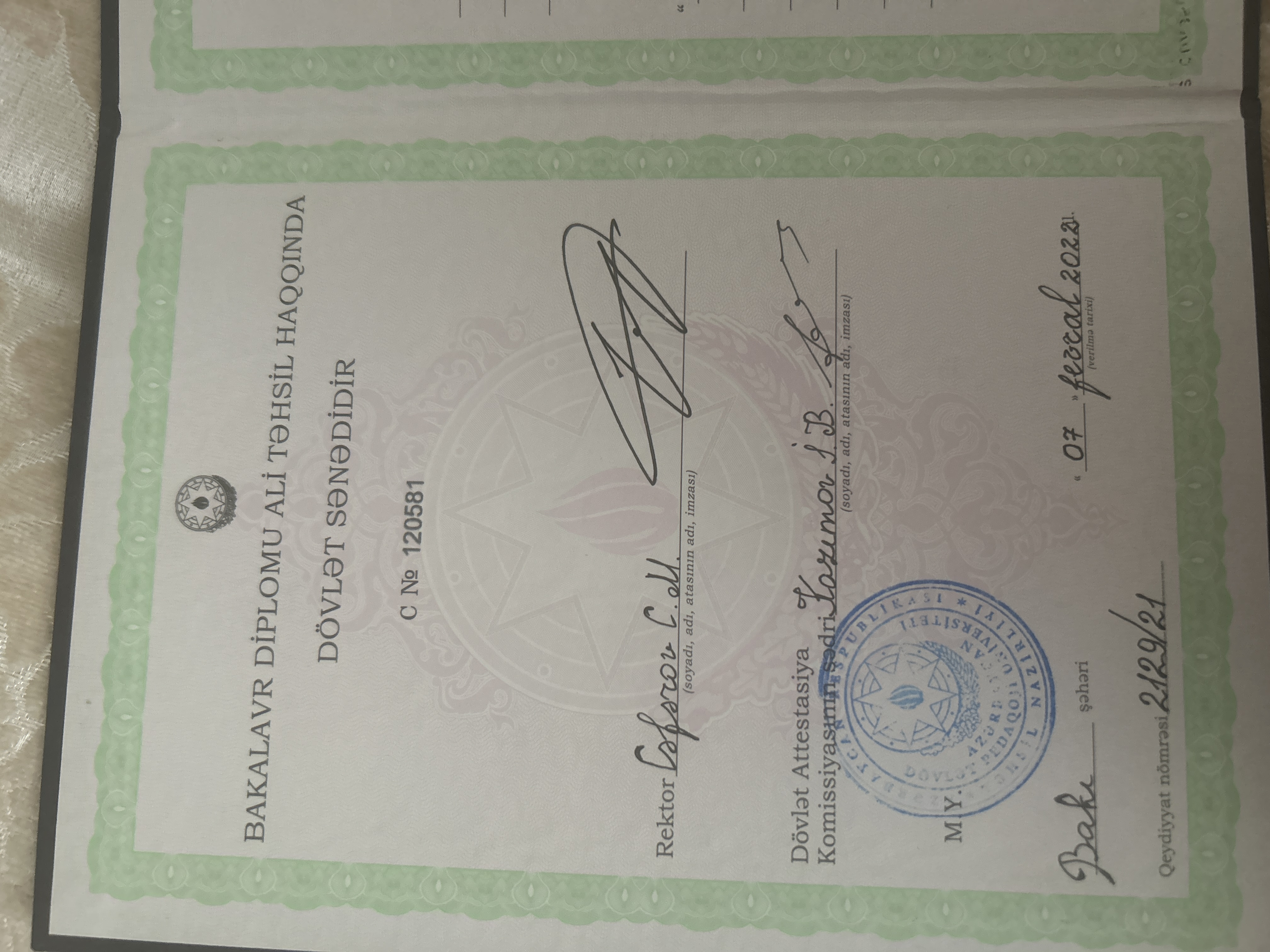 ADPU- da Azərbaycan dili və ədəbiyyat müəllimliyi ixtisasını bitirmişəm. 2022-ci ildə magistraturaya qəbul olaraq ADPU-un Təhsilin təşkili və idarə olunması ixtisaslaşması üzrə təhsilimi davam etdirirəm. 5 ildir repetitorluqla məşğulam. Özüməməxsus metodikam var. Tələbələrimin hər şeyi asan üsulla qavramalarına kömək edirəm. Özüməməxsus və yeni metodlara əsaslanaraq dərslər keçirilir, Müasir təlim texnologiyalarından istifadəyə üstünlük verilir. Bununla yanaşı Ofis proqramları, Komputer bilikləri üzrə sertifikatım var. Əlavə olaraq bu sahəylə də məşğul olub, tələbə hazırlayıram.