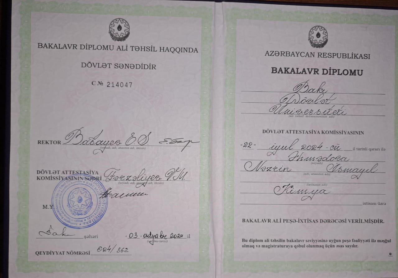 ADPU Riyaziyyat ve İnformatika müəllimliyini,AzTU komputer elmləri (magistr) bitirmişəm.2021-ci ilden miq üzrə imtahan verib Riyaziyyat müəllimi olaraq 37 nömrəli məktəbdə fəaliyyətə başlamışam.Sertifikasiya imtahanından isə 59 bal toplamışam.Bir çox kurslarda fəaliyyət göstərmişəm.Hal hazırda məktəbdən əlavə olaraq repetitorluq edirem.Dərslərə ta