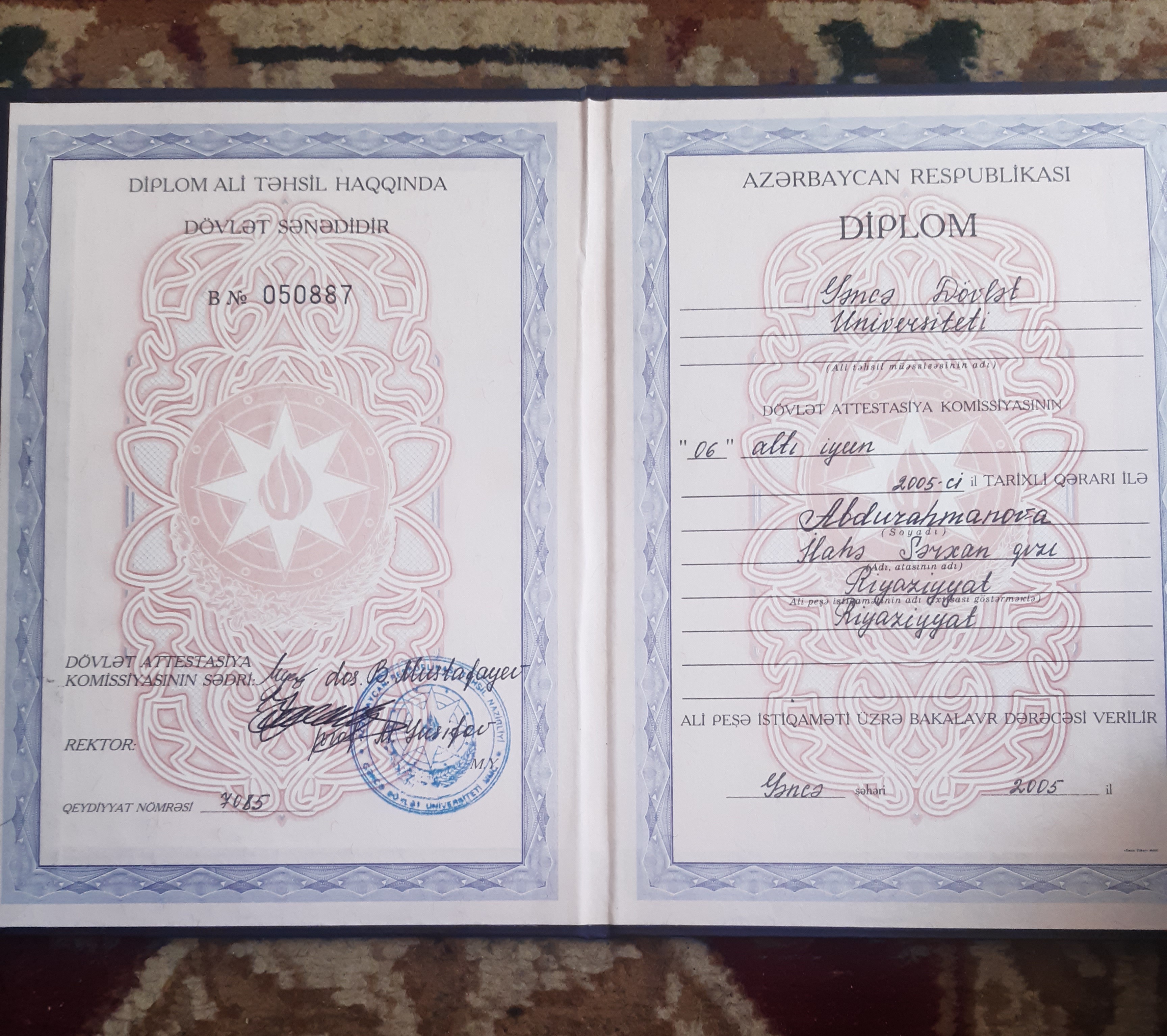 GDU universiteti riyaziyyat ixtisası üzrə bitirmişəm .İşimdə çox məsuliyyətliyəm.Hal hazırda evdə repititorluq edirəm.Riyaziyyat və Fizika fənlərini tədris etmişəm .Ciddi və humanist müəlliməyəm.İbtidai siniflərə evdə hazırlıq keçirəm.İbtidai sinif hazırlığlı istəyənlər mənimlə əlaqə saxlaya bilər.