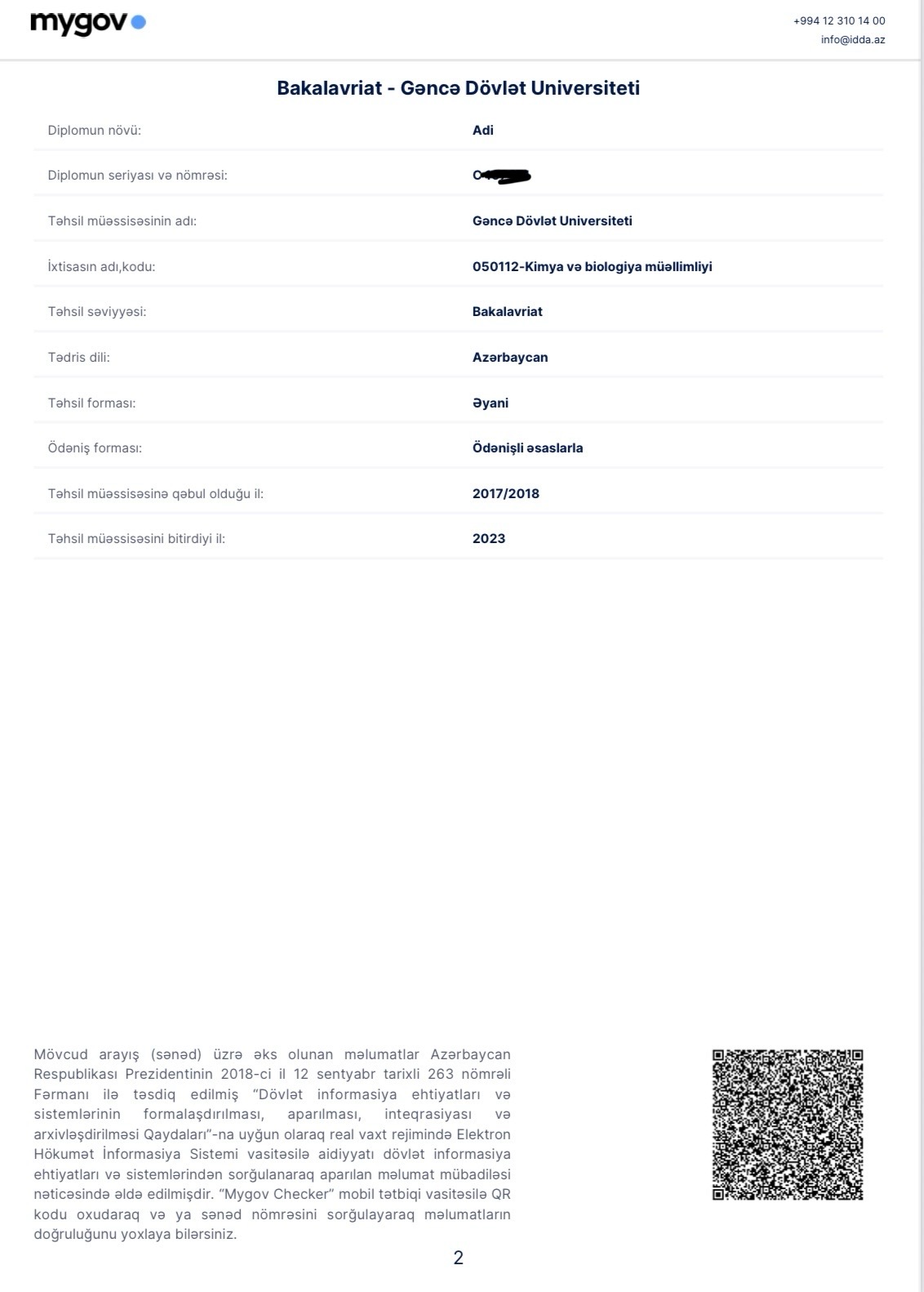 Mən Təranə Rzayeva.Bakalavr ixtisasım kimya və biologiya müəllimliyi,magistratura ixtisasım mikologiya.Fərqlənmə ilə bitirmişəm.Gəncə şəhəri 27Nömrəli orta məktəbdə pedaqoji təcrübəm olub,bununla yanaşı 2021ci ildən əyani və online şəkildə hazırlıqlar keçirəm.