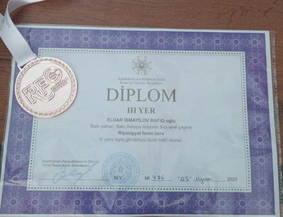 Диплом и медаль моего ученика Эльдара Исмаилова.