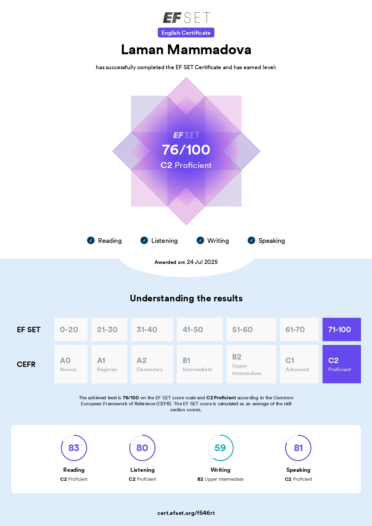 Kanadada təhsil almış İradə Əliyeva Ingilis dili müəllimliyi üzrə 25 ildən çox təcrübəyə malikdir. Tədris Az, Rus, İngilis bölmələri üzrə Onlayn formada yüksək səviyyədə aparılır. Dərslərdə danışıq və dinləmə üzərində daha çox praktika edilir, bununla yanaşı frazeoloji birləşmələr, ideomlar, lüğət və grammar baza, yazı və oxu, aksent bacarıqları fo
