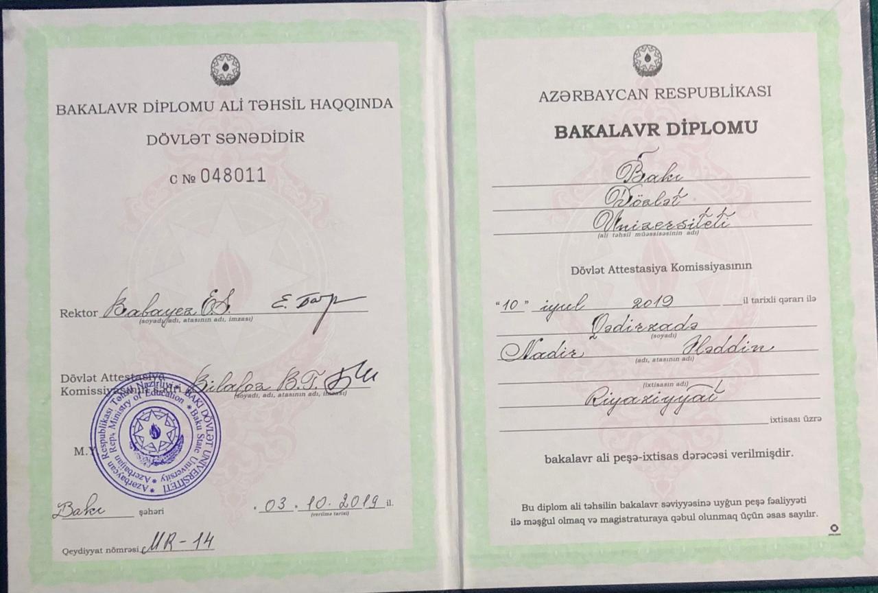 Mexanika-Riyaziyyat fakültəsi Riyaziyyat ixtisasi (İngilis bölməsi)
