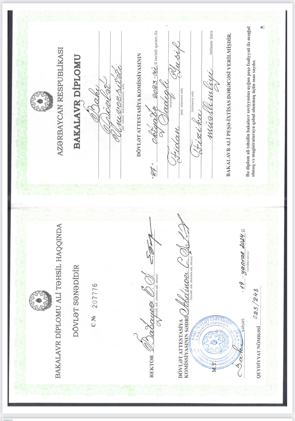 Azərbaycan Dövlət pedaqoji Universitetinin Riyaziyyat və İnformatika ixtisası üzrə təhsil almışam. Hal-hazırda Riyaziyyat hazırlığı ilə məşğulam. (Az sektor) Təkmilləşdirmə və Abituriyentlərə Online, ənənəvi Qrup və fərdi şəkildə hər tərəfli proqramı mənimsədirəm. Qrup şəklində 1 nəfər 60 AZN , fərdi isə sinifə görə dəyişir. Əlavə məlumat üçün əla