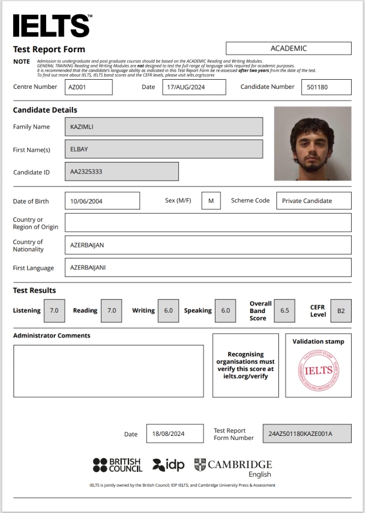 İngilis dilində IELTS sertifikatına sahibəm, bu isə həm ingilis dilində dərs keyfiyyətini, həm də xaricdə təhsil planı olanlara dəstəyimi artırır.