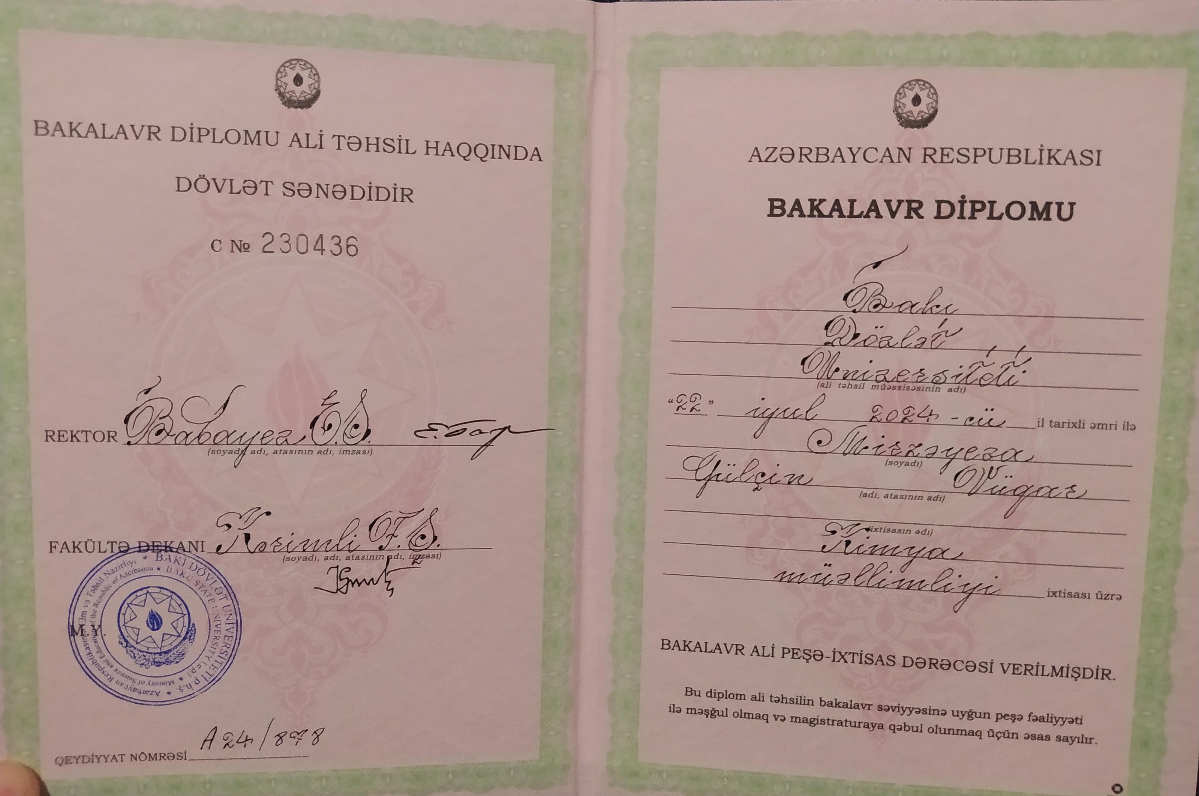 ADPU kimya və biologiya fakultəsi 2013-cü il məzunuyam. 2014-cü ildə ucqar kənddə fəaliyyətə başlamışam,2021-ci ildən 53 nömrəli məktəbin kimya müəllimi kimi işləyirəm. İnstagramda kimya_muellimi_billure adını klikləyərək nəticələrlə tanış ola bilərsiniz. 100dəfə deməkdənsə, 1dəfə görsəniz məsləhətlidir. Məzunlarımla qürur duyuram,çünki onlar say