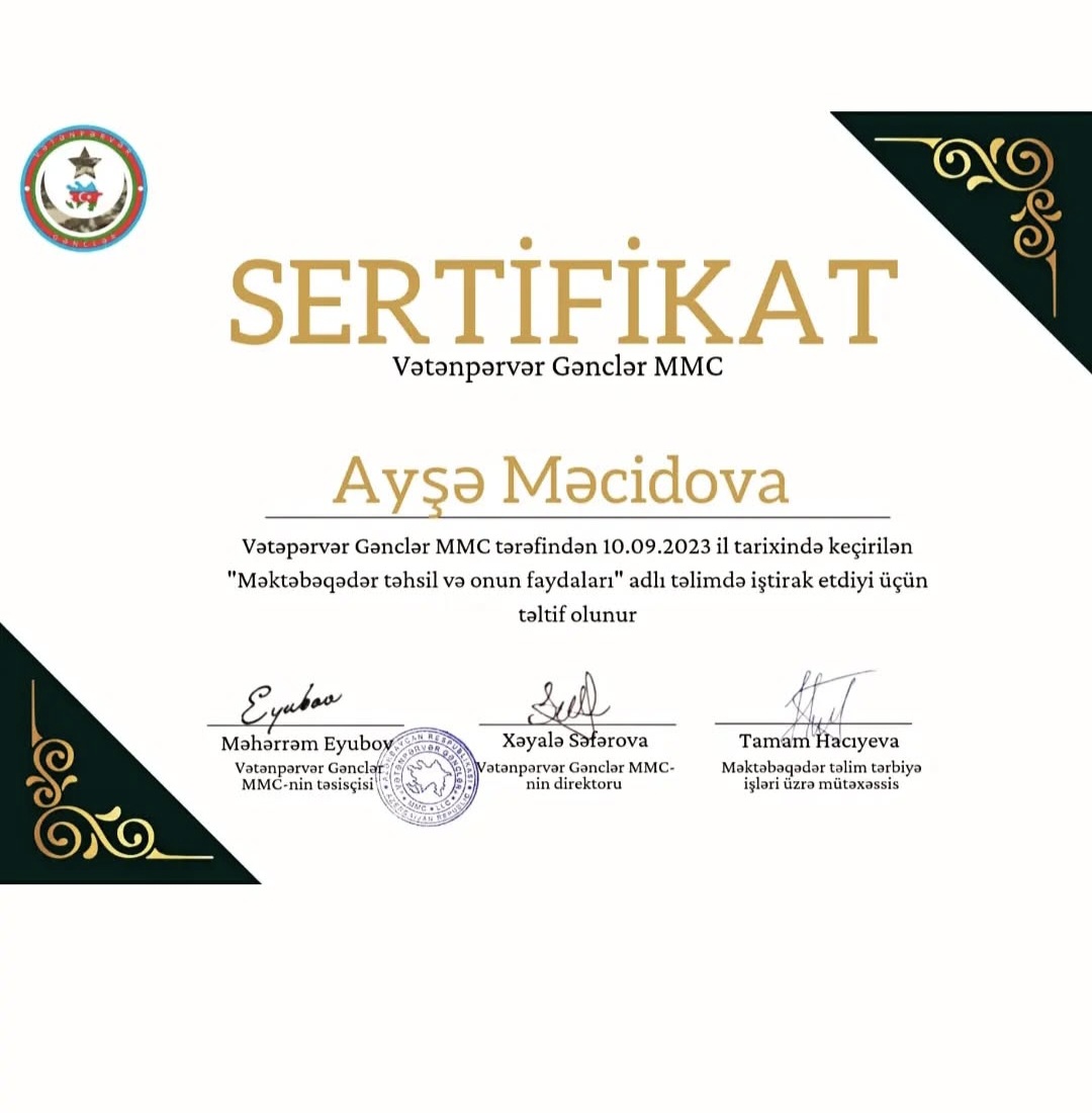 "Məktəbəqədər təhsil və onun faydaları"adlı təlim