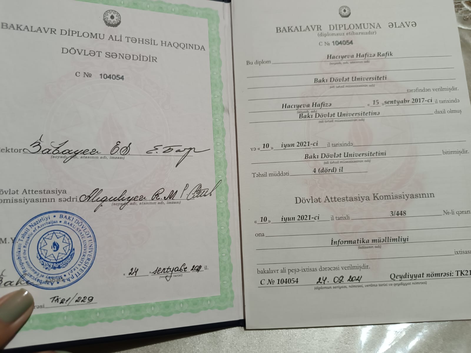 Bakalavr təhsilimi Bakı Dövlət Universitetində, magistr təhsilimi isə Azərbaycan Texniki Universitetində yüksək ortalama ilə başa vurmuşam. Miq imtahanında 2025-ci ildə topladığım bal 85 bal.Office proqramları (Word, Excel, PowerPoint) üzrə müxtəlif diplom və sertifikatlara sahibəm. 1 illik kurs müəllimliyi təcrübəmlə yanaşı, “İdrak” liseyində info