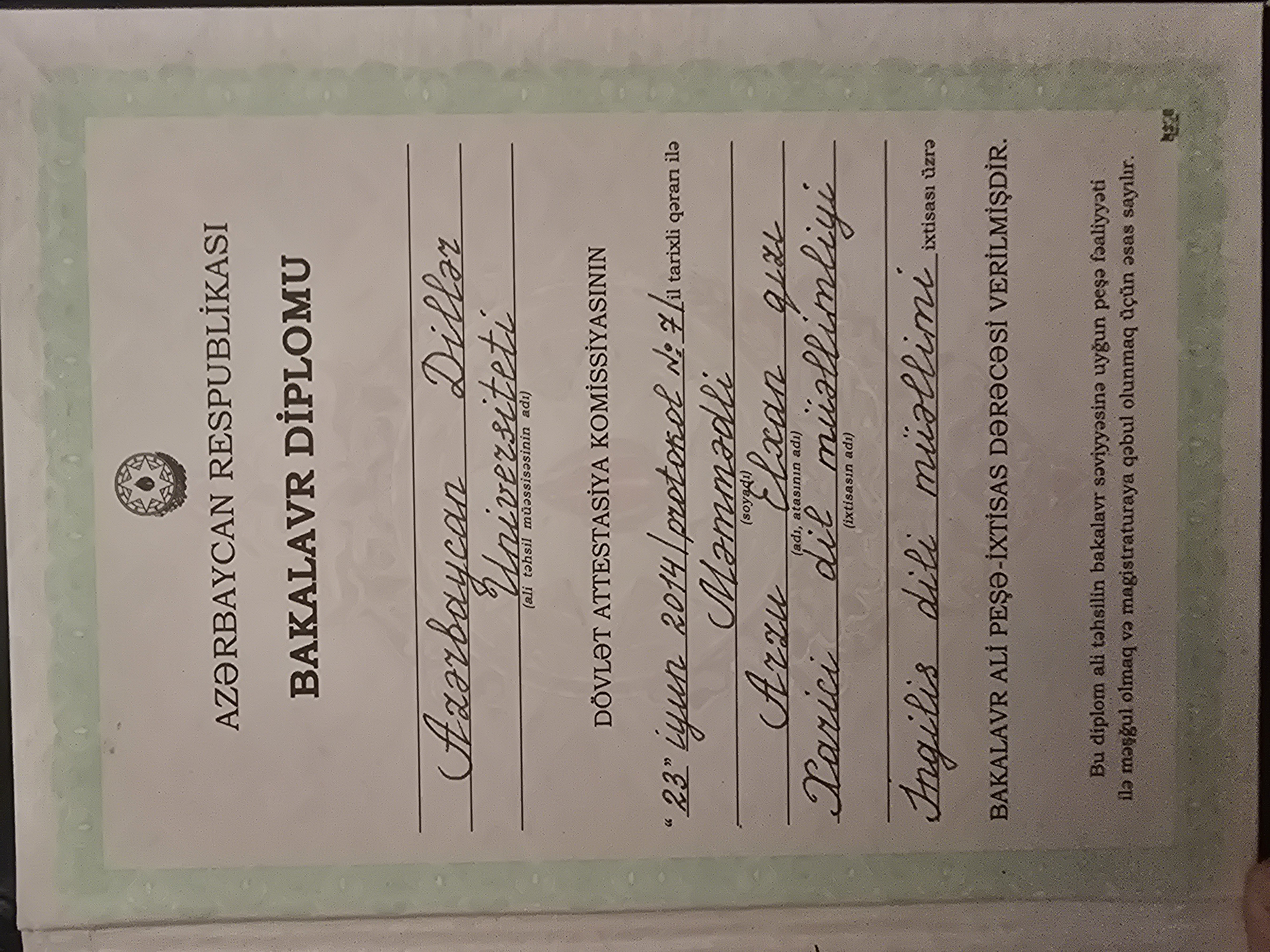 Azərbaycan dillər universitetinin bakalavr diplomu
