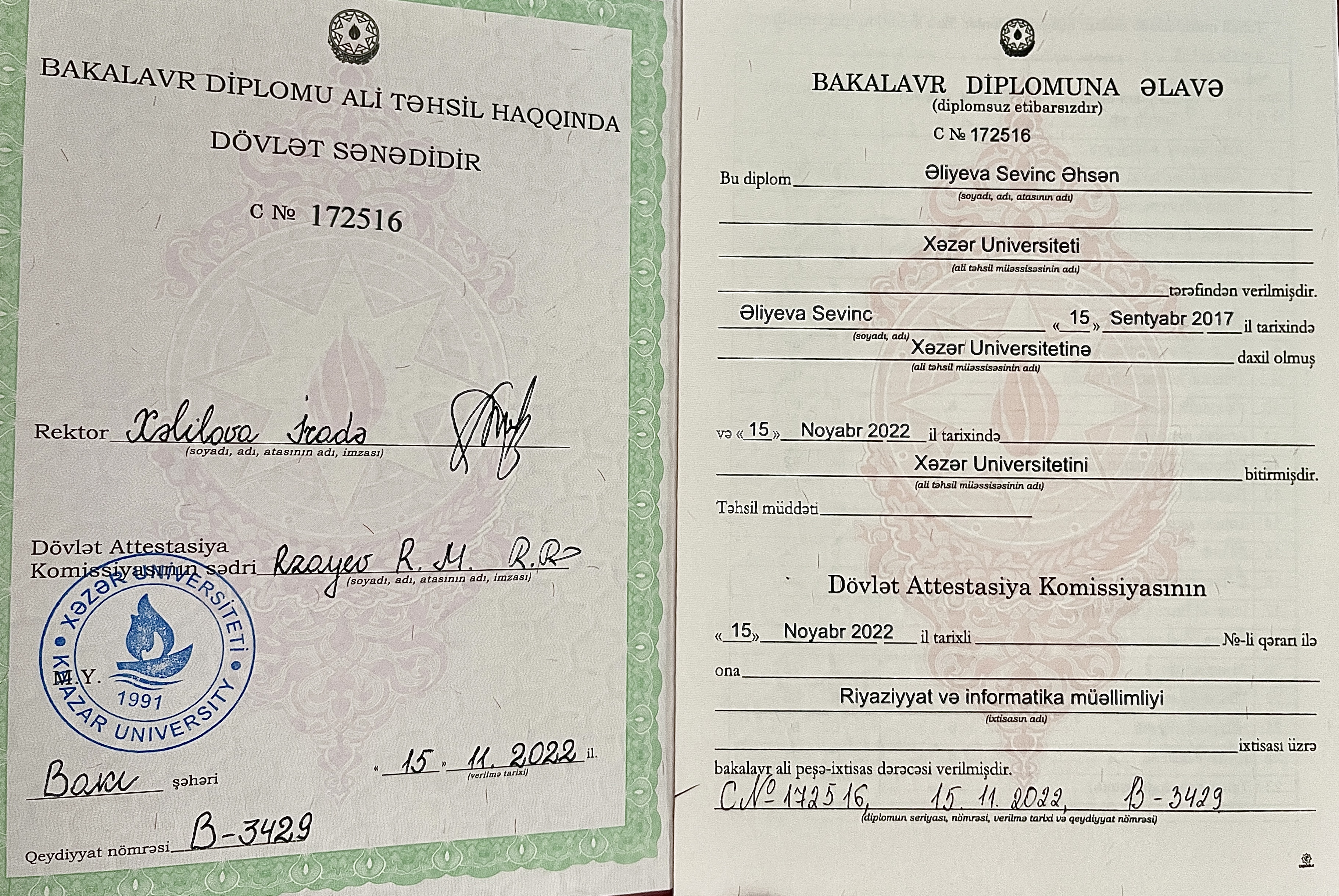 Hazırda universitetdə Kompüter Elmləri üzrə dərs deyirəm. Riyaziyyat-İnformatika müəllimliyi və Kompüter Mühəndisliyi (tədris ingilis dilində) ixtisaslarını fərqlənmə ilə bitirmişəm. 5 illik təcrübəm var. Yay düşərgələri və özəl məktəblərdə ingilis dilli şagirdlərlə çalışmışam. İzahlarım sadə, yanaşmam isə həvəsləndirici və anlayışlıdır. Şagirdlər və valideynlərdən daim müsbət rəylər alıram.