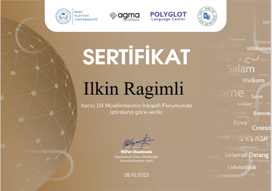 Salam, mənim adım İlkindir. 2023-cü ildən bəri ingilis dili müəllimi kimi fəaliyyət göstərirəm və bu müddət ərzində tələbələrin inkişafını müşahidə etmək mənim üçün böyük bir motivasiya mənbəyinə çevrilib.