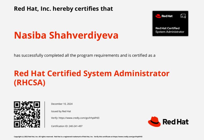 Sahib olduğum CompTIA A+ və RHCSA sertifikatları bu sahədə beynəlxalq səviyyədə səriştəmi sübut edir.