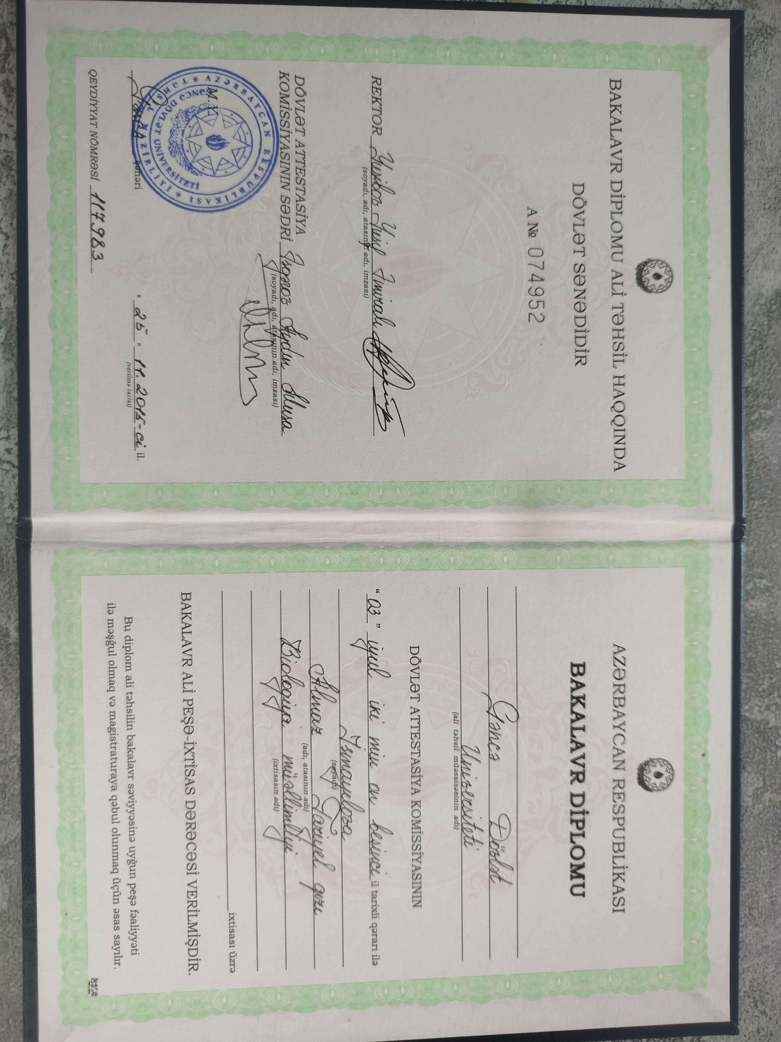 Gəncə Dövlət Univeristeti bakalavr diplomu