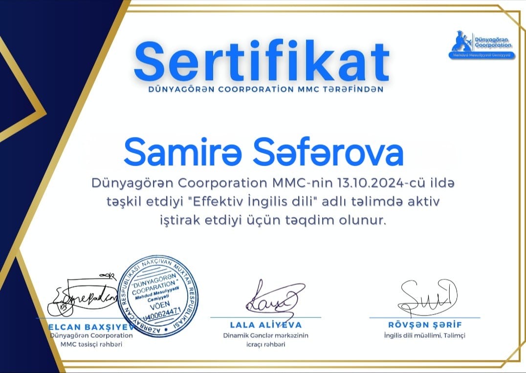 Samire muellime ile men hazirlasmisam,cox gozel sebirli,savadli murllimedir.Ne yaxsi ki,sizi tsnimisam♥️