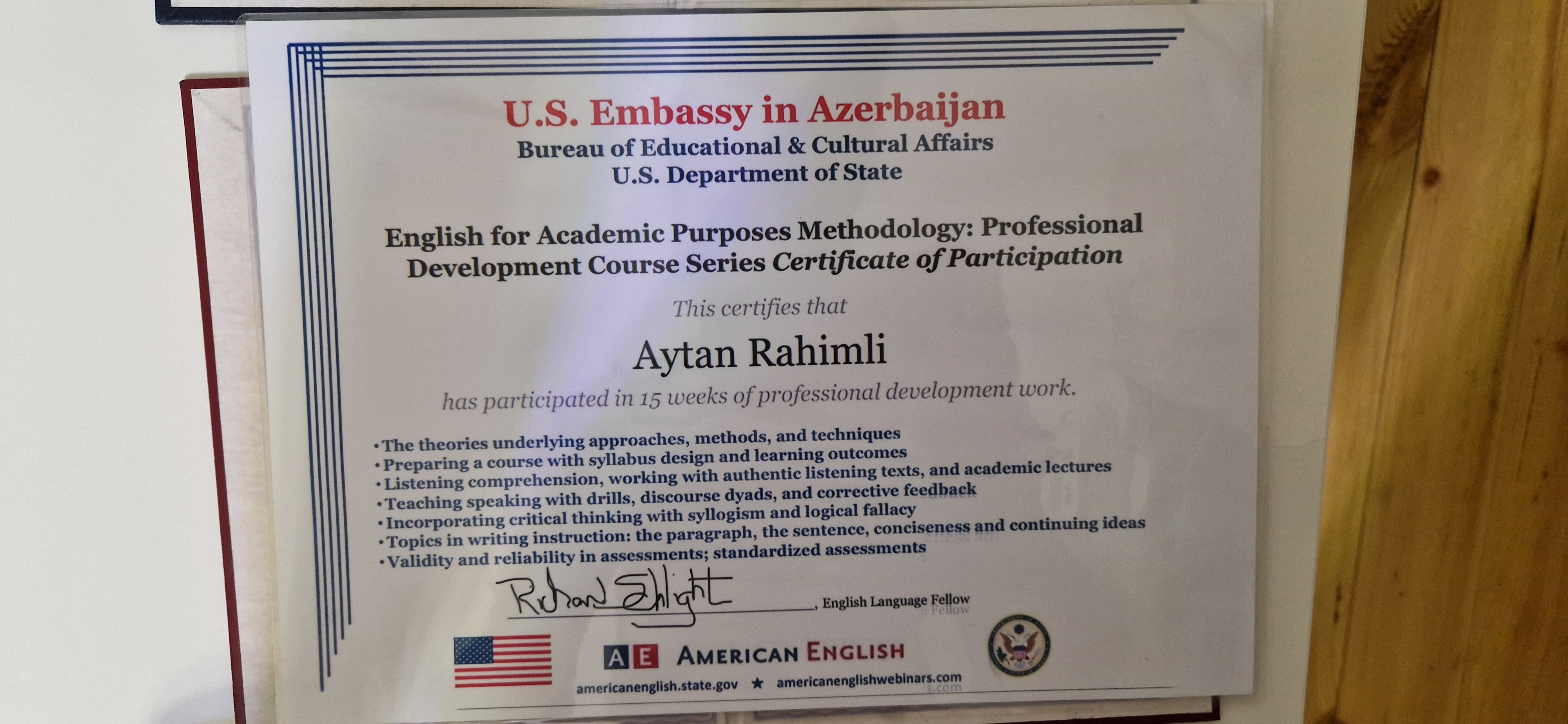 English for Academic Purposes Methodology : Professional Development Course Series Certificate of Participation (2021)