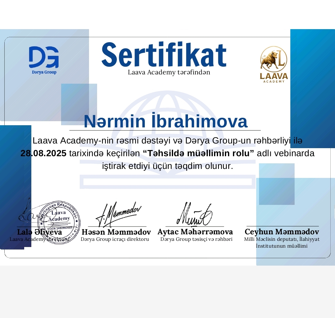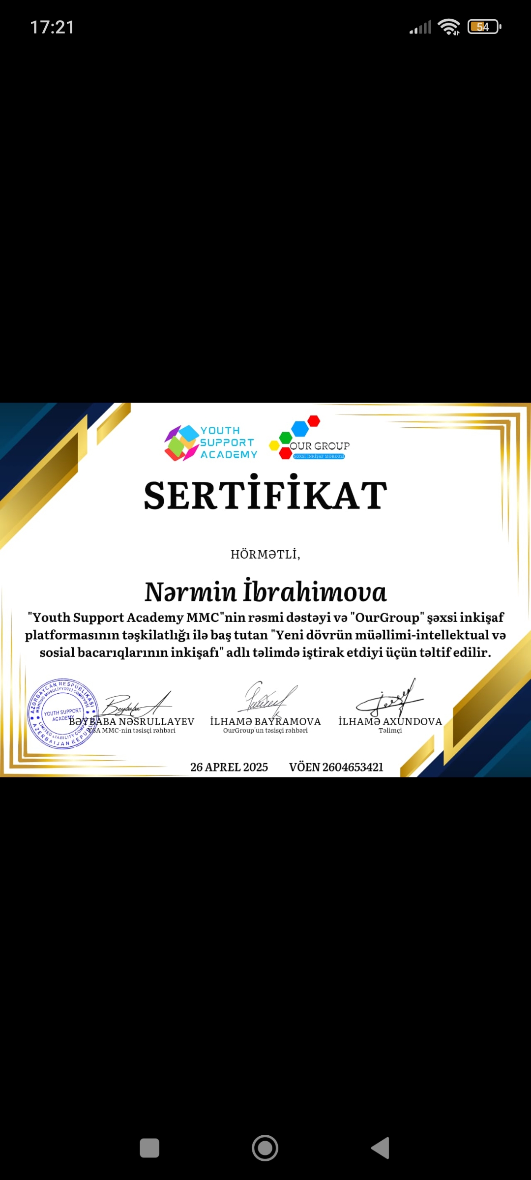 Bakalavr və magistratura təhsilim: Azərbaycan Dövlət Pedaqoji Universiteti. İxtisasım: Azərbaycan dili və ədəbiyyat müəllimliyi, metodist