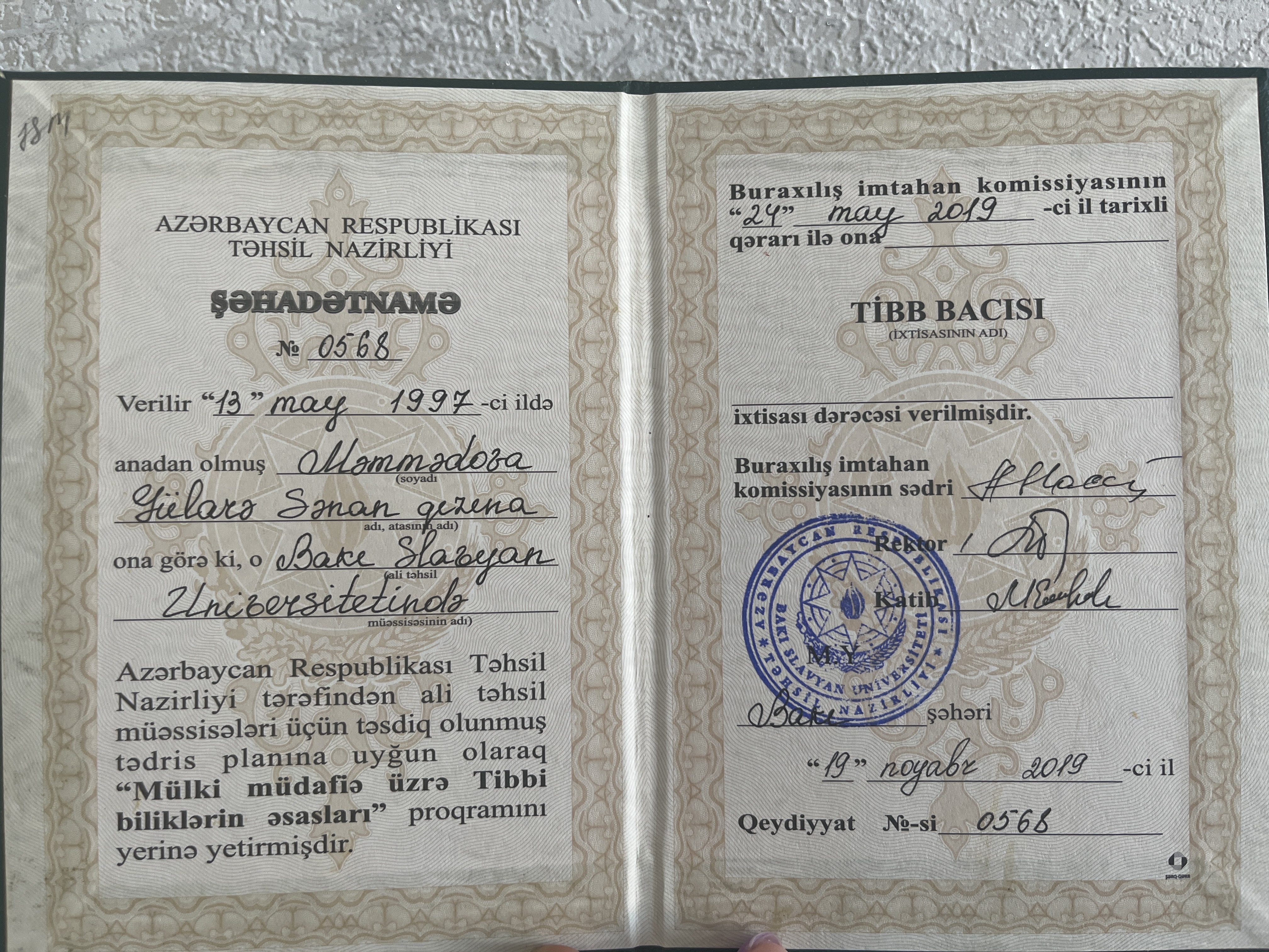 Tibb bacisi sehadetname
