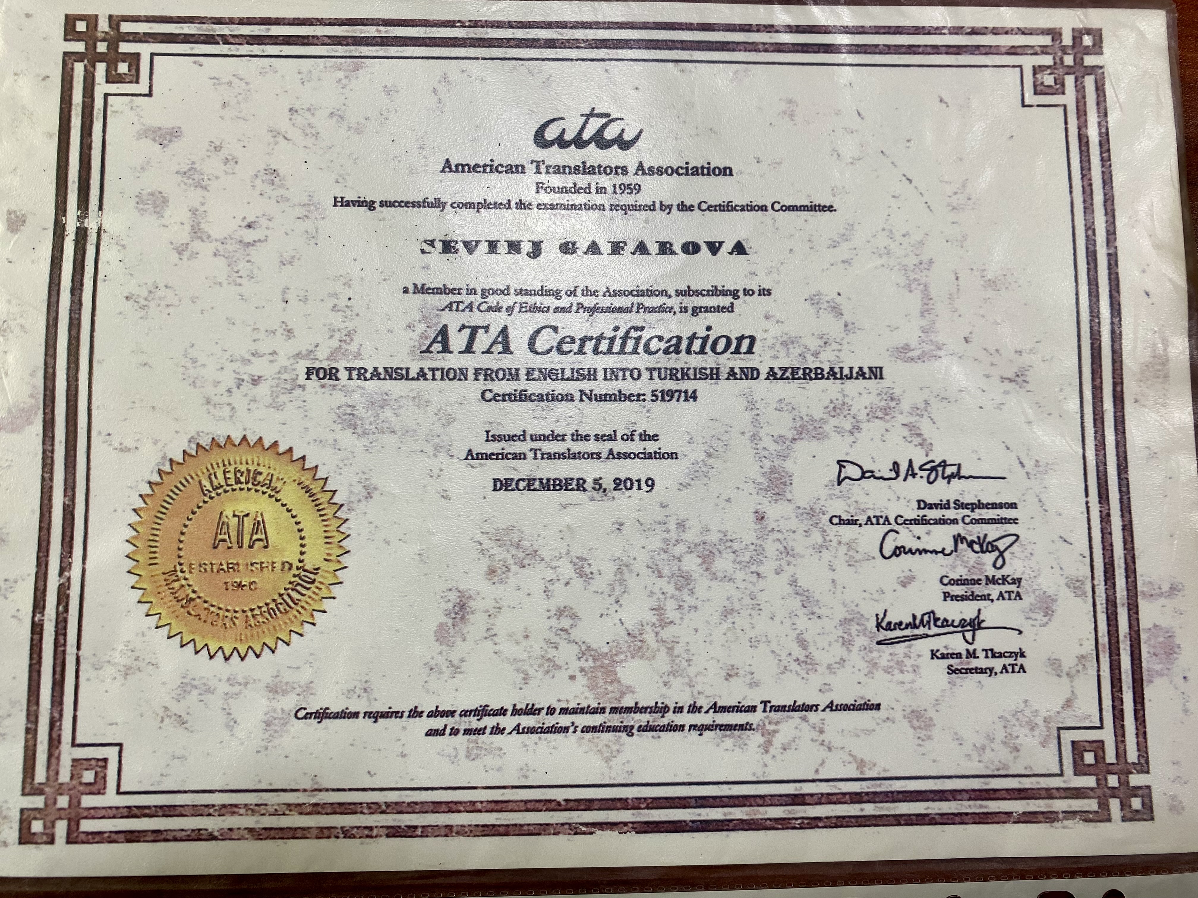 ATA certification, лицензия переводчика ААП Американской Ассосации Переводчиков