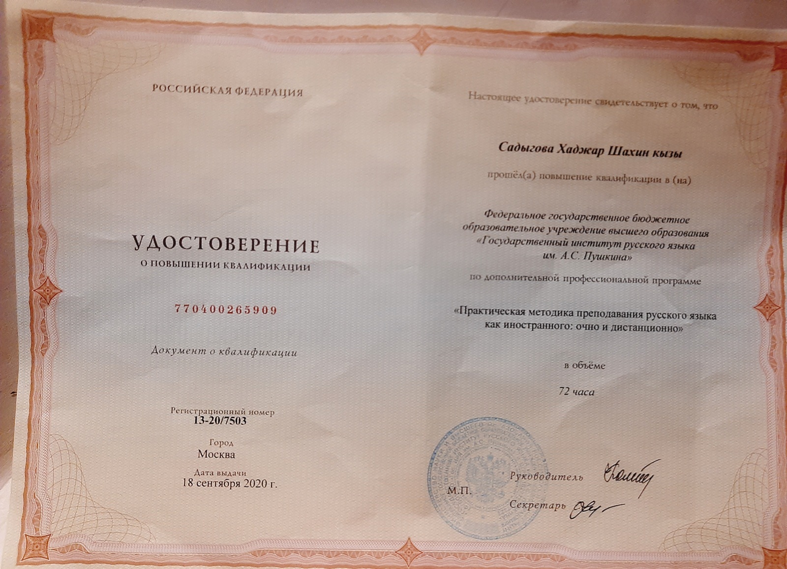 Bakalavr təhsilim Rus dili və ədəbiyyatı ixtisası üzrədir. 23 il ərzində həm rus dili və ədəbiyyatı tədrisi ilə həmdə ki, ibtidai siniflərdə tədrisin təşkili ilə məşğul olmuşam və kifayət qədər təcrübəm var. Bu dövr ərzində peşəkarlıq səviyyəmi yüksəltməkdən ötrü müxtəlif proqramlarda və layihələrdə iştirak etmişəm. Məktəbəqədər təhsil müəsiss