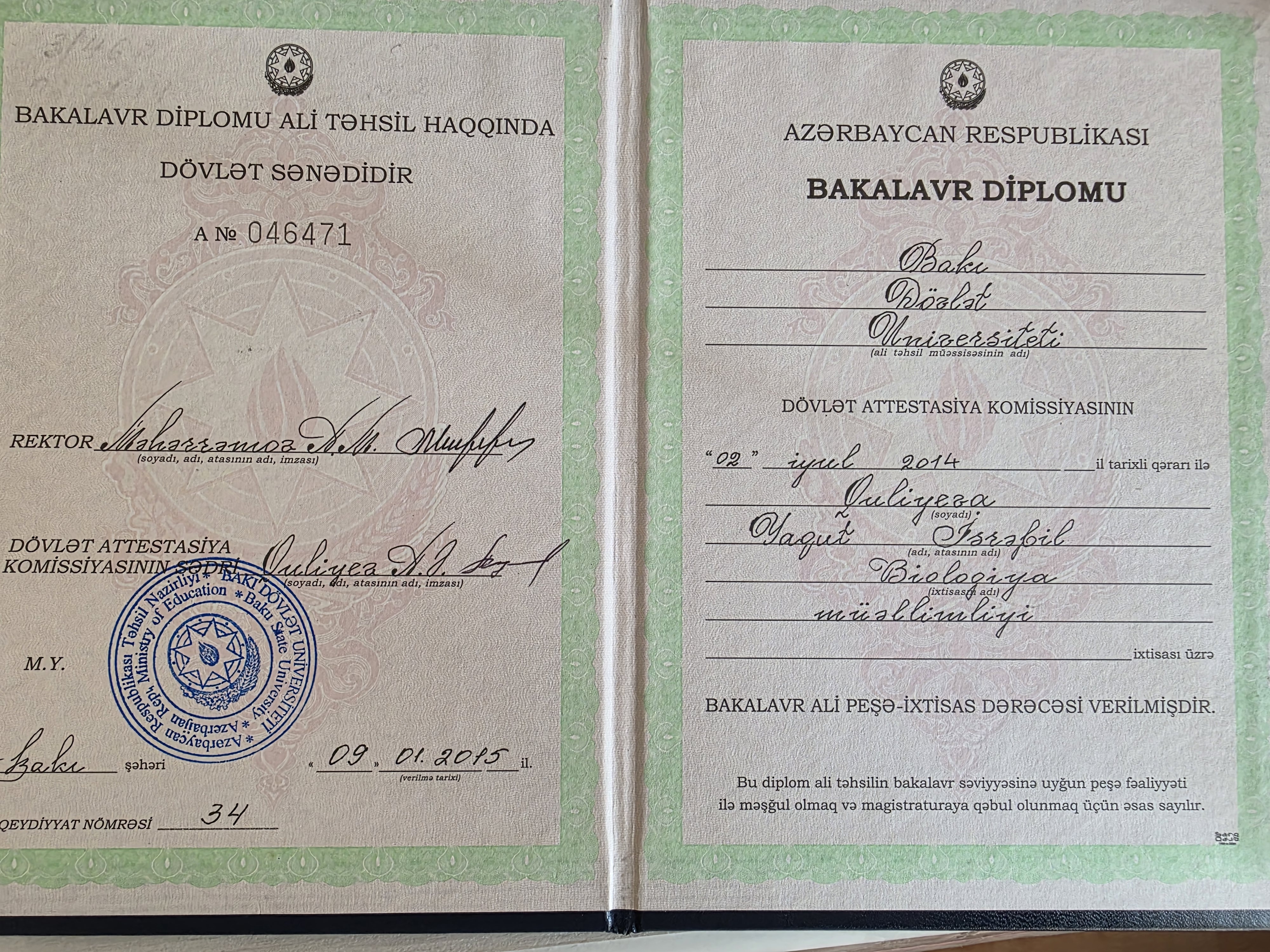 Окончила Бакинский Государственный Университет-бакалавр,Аграрный Университет-магистр.Преподаю предмет природу и биологию.Балл сертификации 51.Чтобы донести знания до учеников применяю современную методику,индивидуальный подход.Объясняю на доступном простом языке.После объяснения -закрепление материала :вопросно-ответная беседа,тестовые задания