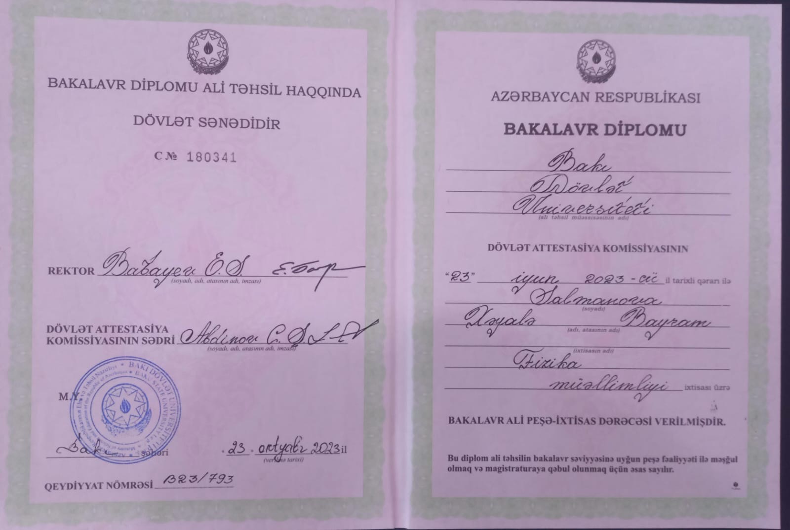 Bakı Dövlət Universitetinin Fizika fakultəsini bitirmişəm. Fizika müəllimiyəm.