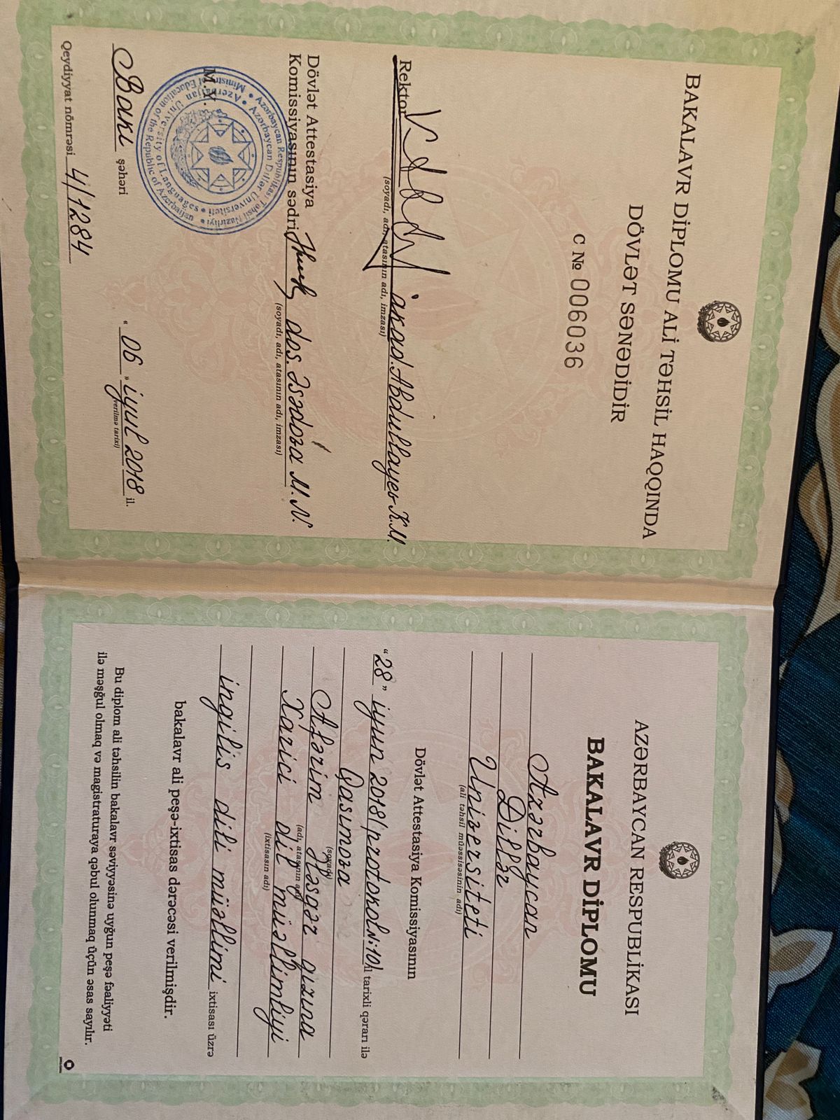 Bakalavr tehsilim _ADU_ingilis ve alman dili muellimliyi.