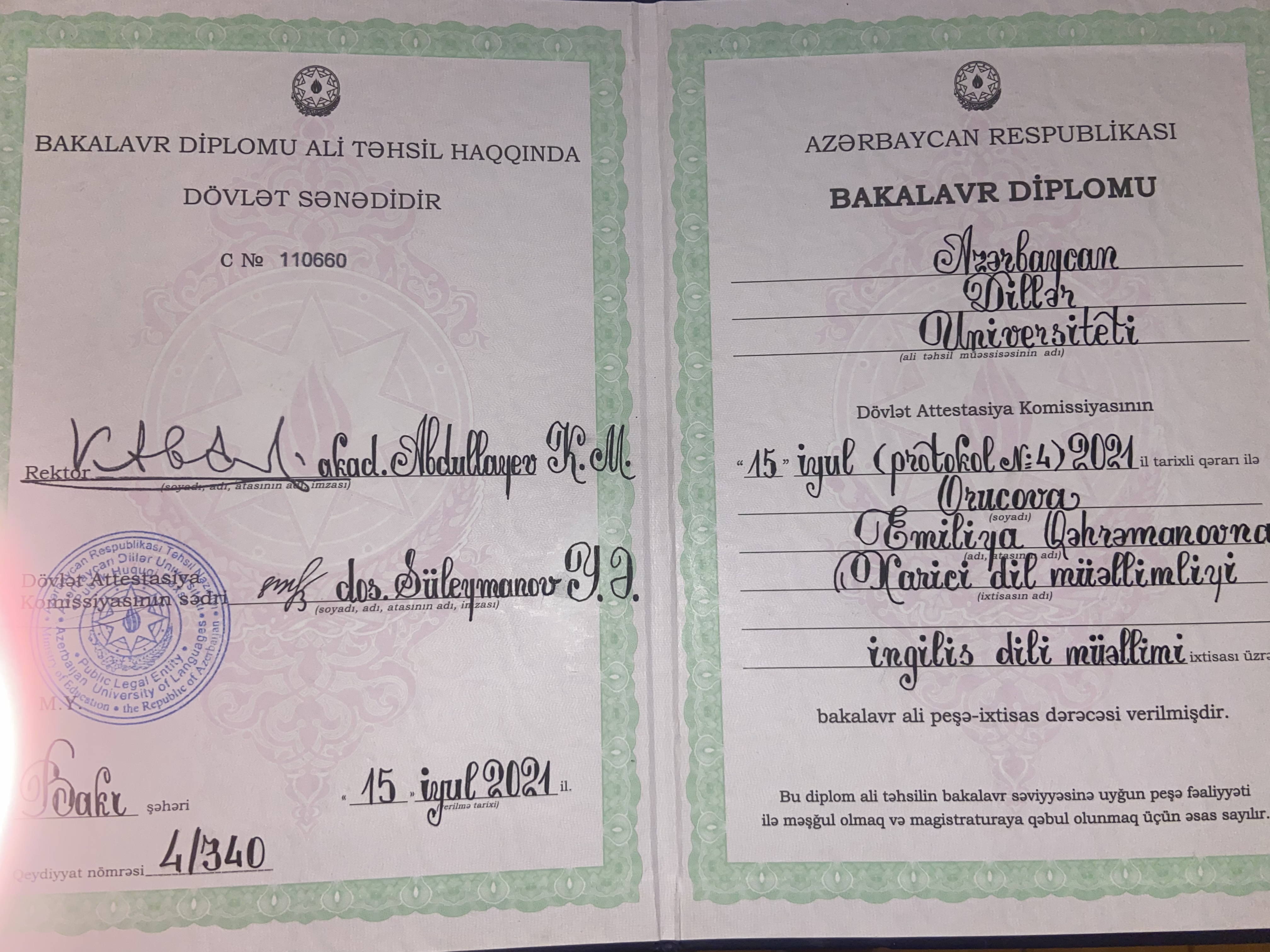 İngilis dilini sevərək və əylənərək öyrədirəm.Azərbaycan Dillər Universitetini 2021-ci ildə İngilis dili müəllimliyi üzrə bitirmişəm. 2019-cu ildən yəni, universitetdə oxuduğum illərdən bəri ingilis dilinin tədrisinə başlamışam. Bütün yaş qrupları üzrə bu dildə sıxılmadan, çəkinmədən danışmağı öyrətdiyim saysız tələbələrimdən biri də siz ola bilərsiniz!