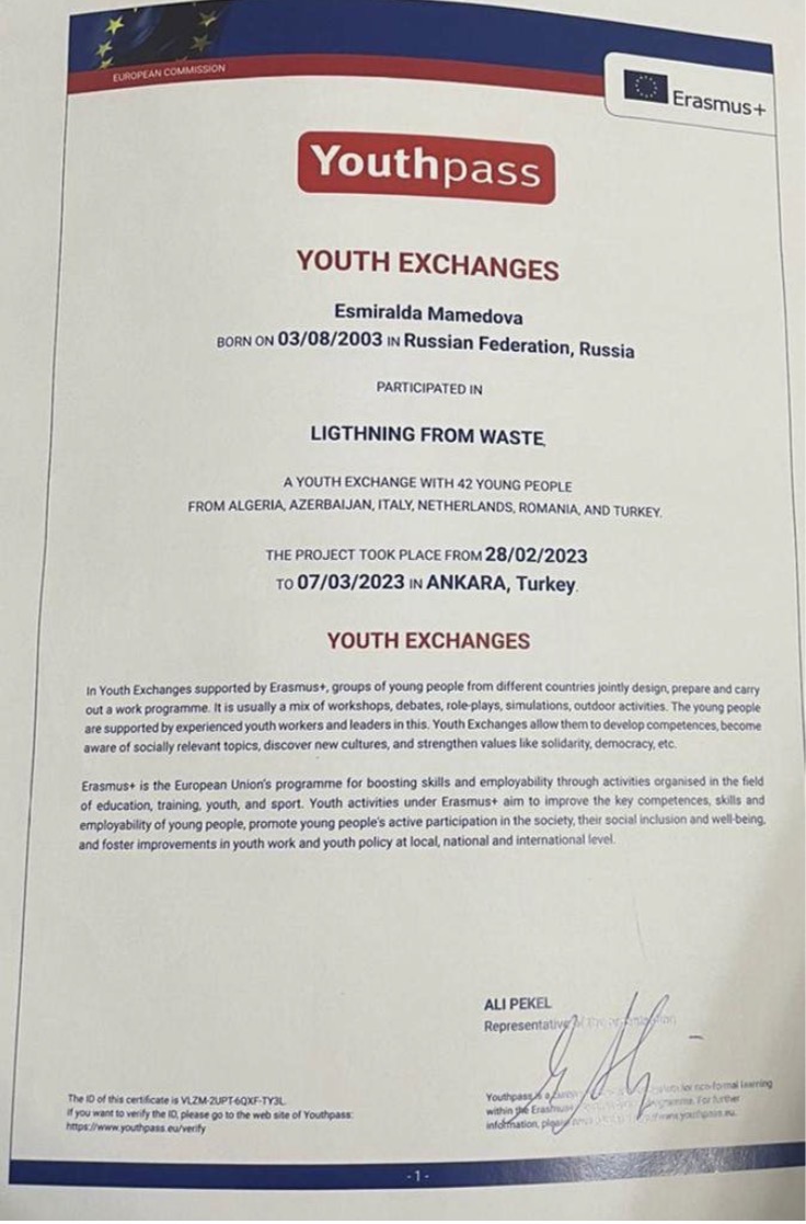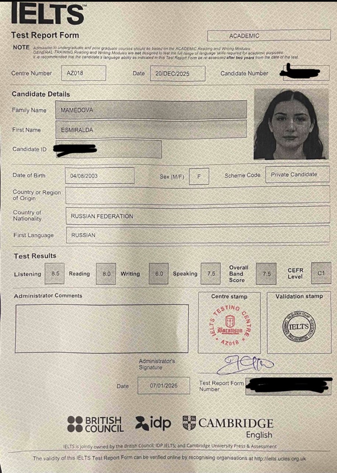 Я человек, который живёт английским! Свободно говорю на английском, русском, турецком и азербайджанском. Я активно путешествовала и участвовала в международных программах в таких странах, как Турция, Тунис и Румыния, что помогло мне лучше понимать культуру и практику языка.