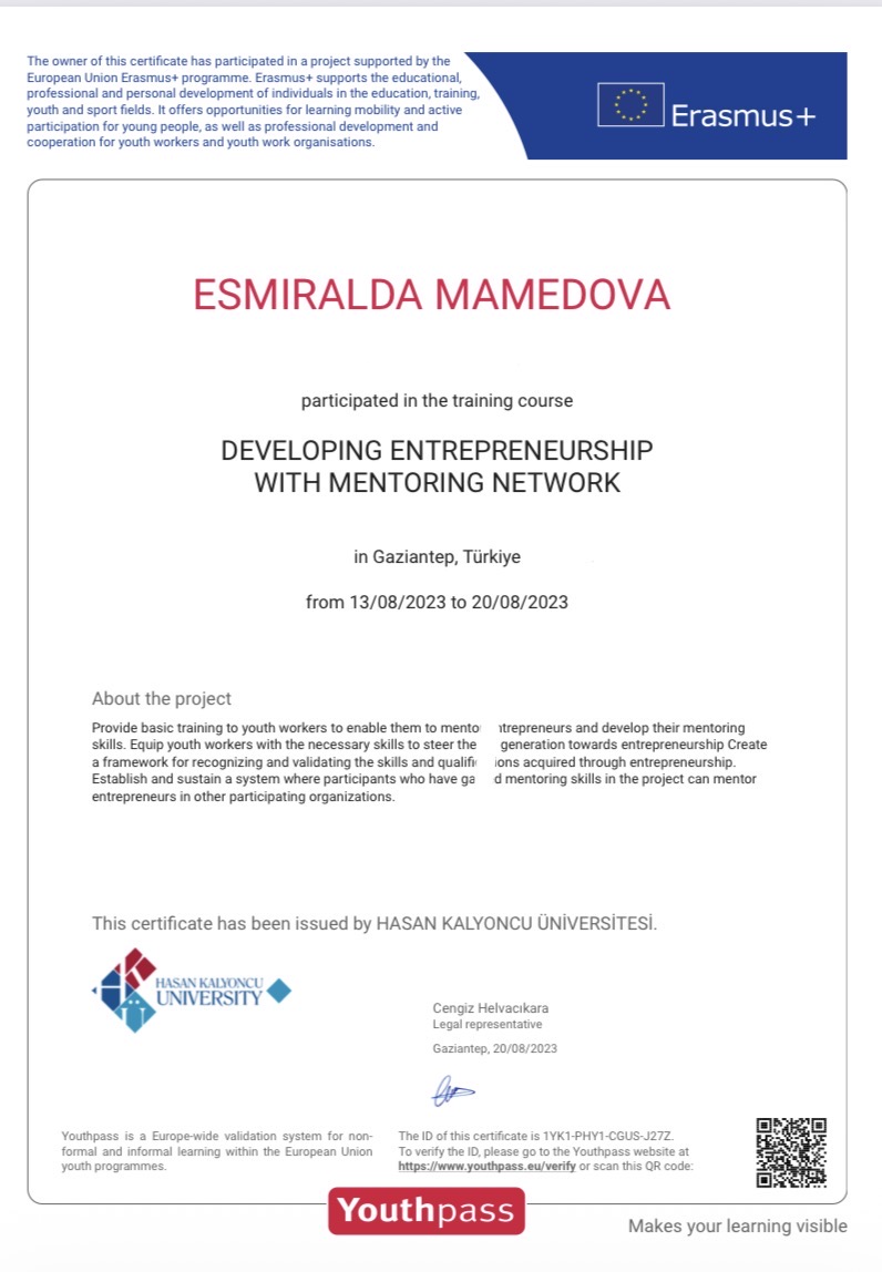 Erasmus+ Training Course ''Developing Entrepreneurship with the Mentoring Network'' Gaziantep,Turkiye