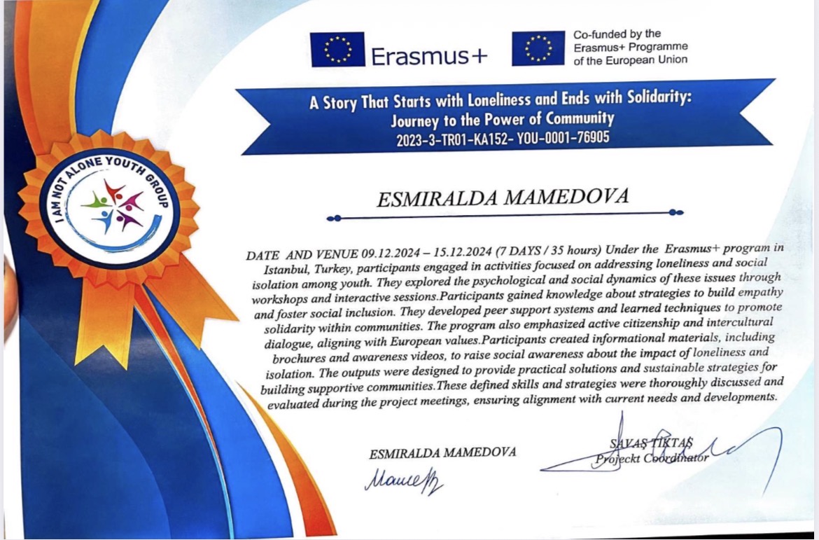 Erasmus+ Youth Exchange " A Story That Starts with Loneliness and Ends with Solidarity: Journey to the Power of Community" Istanbul, Turkiye