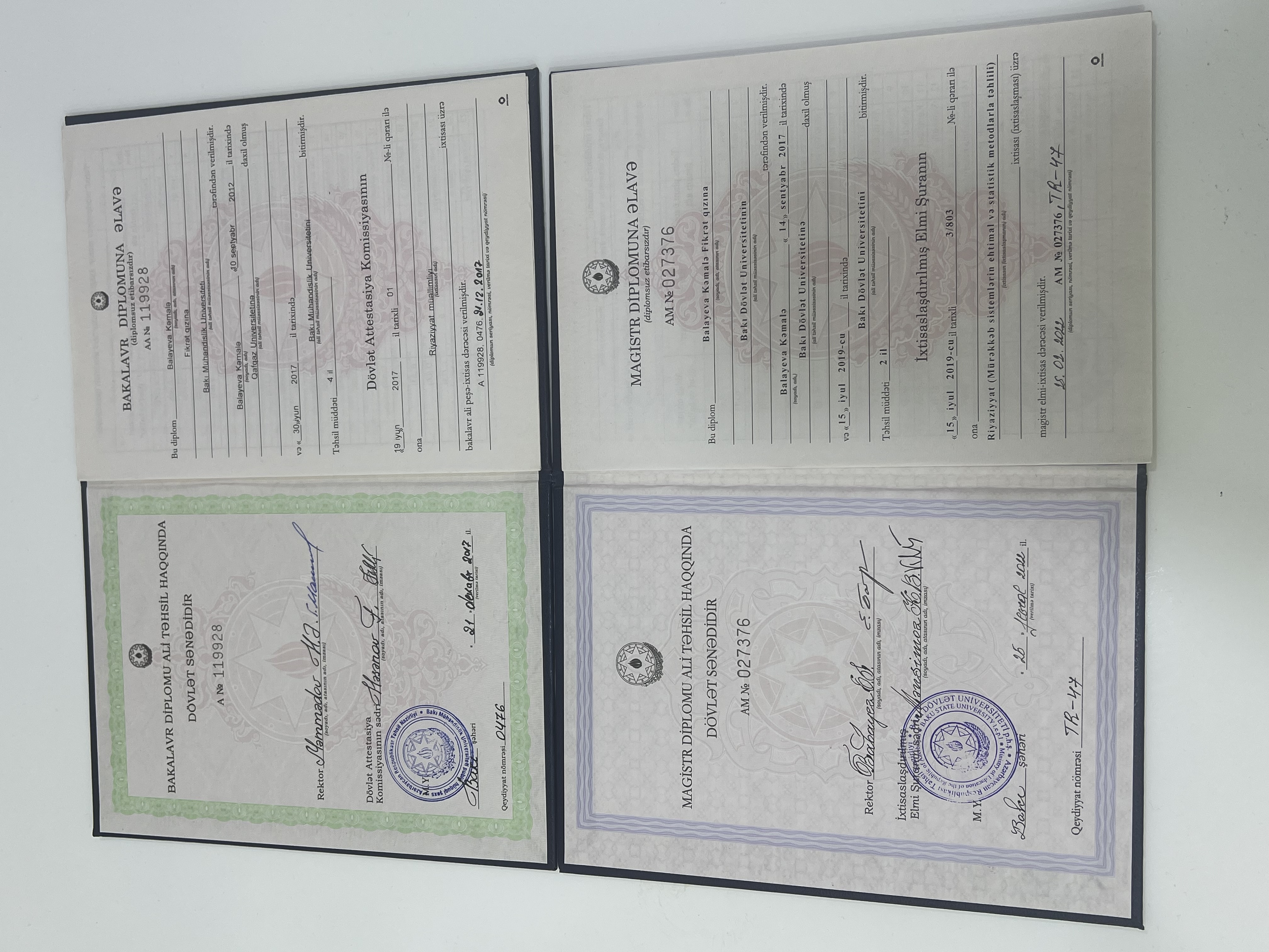 ADPU Riyaziyyat ve İnformatika müəllimliyini,AzTU komputer elmləri (magistr) bitirmişəm.2021-ci ilden miq üzrə imtahan verib Riyaziyyat müəllimi olaraq 37 nömrəli məktəbdə fəaliyyətə başlamışam.Sertifikasiya imtahanından isə 59 bal toplamışam.Bir çox kurslarda fəaliyyət göstərmişəm.Hal hazırda məktəbdən əlavə olaraq repetitorluq edirem.Dərslərə ta
