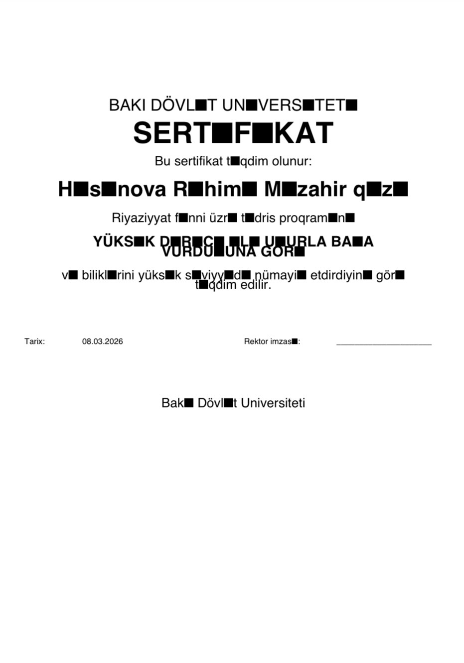 Riyaziyyat fənni üzrə yüksək dərəcəli Sertifikat