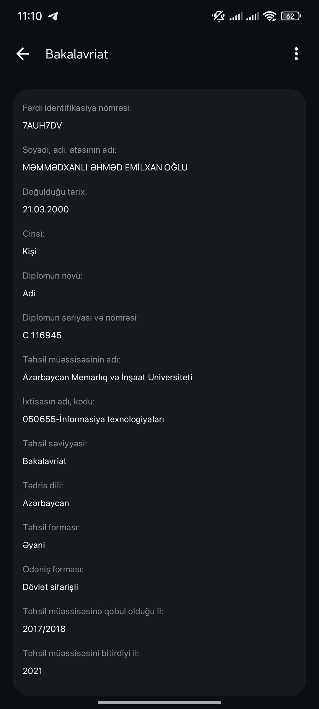 Hər kəsə salam.Həm bakalavr həm magistr təhsili informatika müəllimliyi sahəsi üzrə almışam.Özəl məktəbdə 1 il işləmişəm.Hazırda 255 nömrəli məktəbdə rəqəmsal-informatika fənni üzrə müəllim işləyirəm.Miq balım 2025ci il üçün (85bal). dərslərim onlayn və əyani formada keçirilir.qrup və ya fərdi dərslərdən seçim edə bilərsiz. MİQ,Sertifikasiya,Abitur