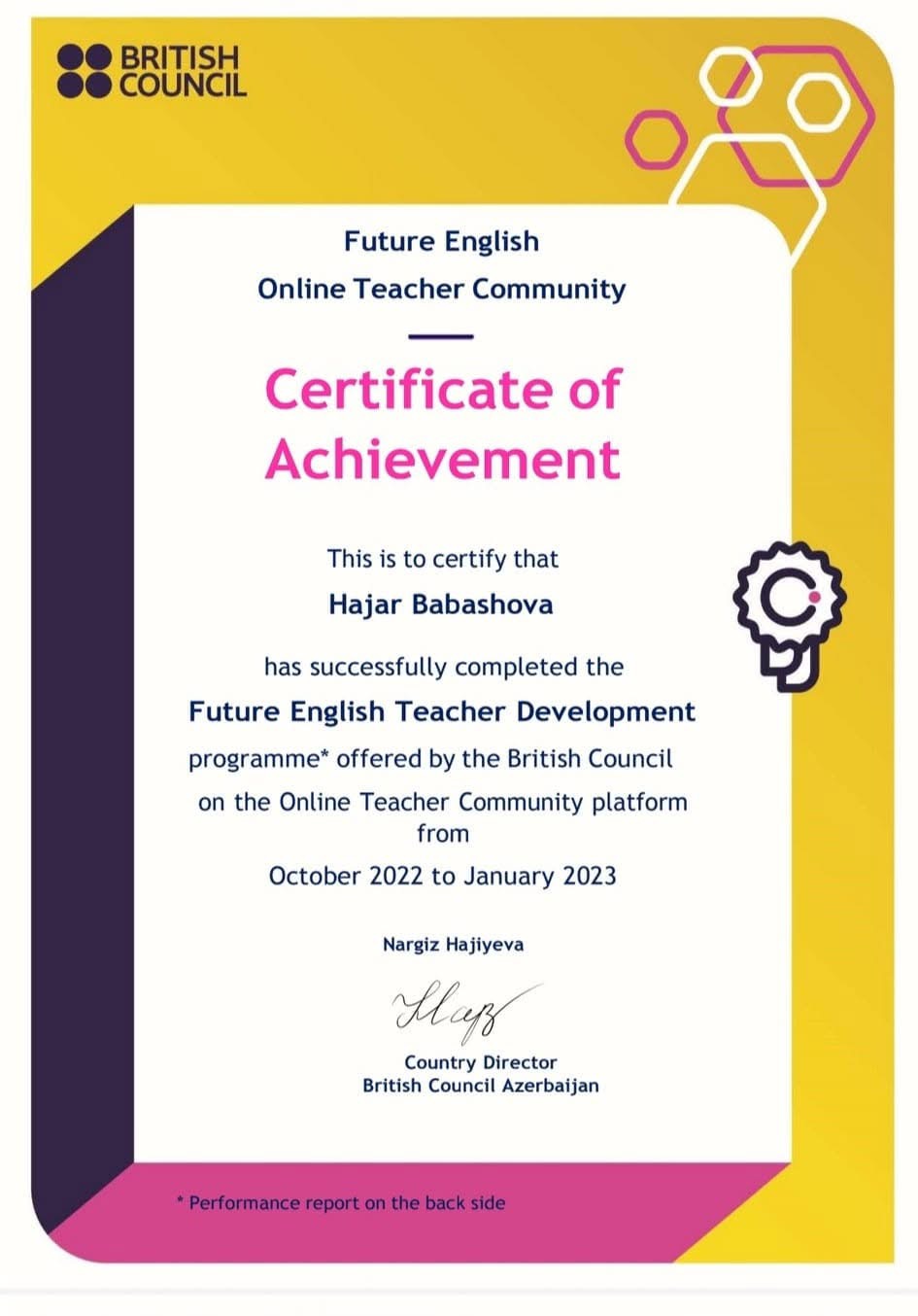British Council təlimini yüksək nəticə ilə başa vurduğu üçün