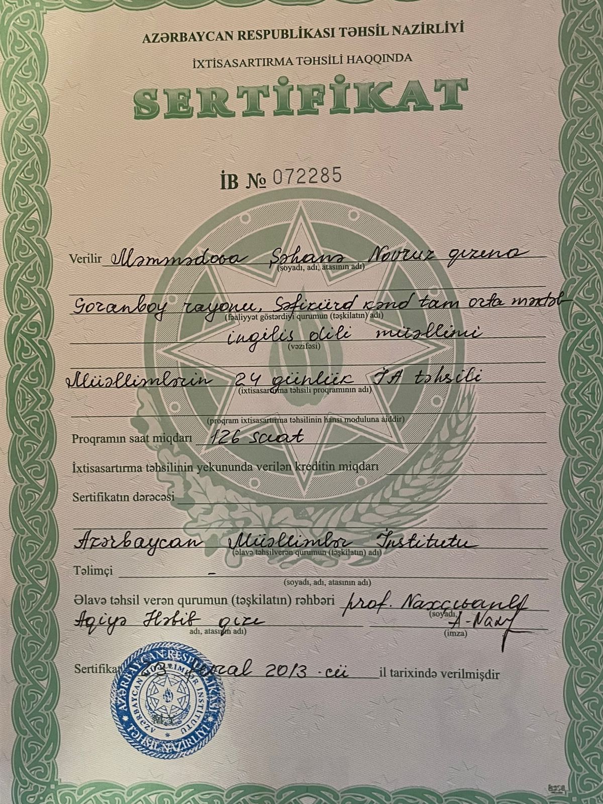 Adım Şəhanədir Gəncə Dövlət Hümanitar kollecin İngilis dili müəllimliyini fərqləndirmə diplomu ilə bitirmişəm. Mənim keçdiyim online təhsilin keyfiyyətindən əmin ola bilərsiniz. Bir neçə ingilis dili kurslarına getmişəm və Sertifikatlarım var.