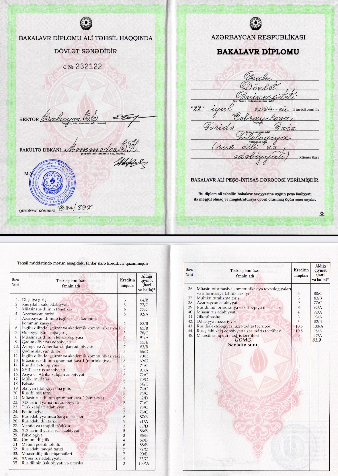 Bakalavr təhsilim Rus dili və ədəbiyyatı ixtisası üzrədir. 23 il ərzində həm rus dili və ədəbiyyatı tədrisi ilə həmdə ki, ibtidai siniflərdə tədrisin təşkili ilə məşğul olmuşam və kifayət qədər təcrübəm var. Bu dövr ərzində peşəkarlıq səviyyəmi yüksəltməkdən ötrü müxtəlif proqramlarda və layihələrdə iştirak etmişəm. Məktəbəqədər təhsil müəsiss