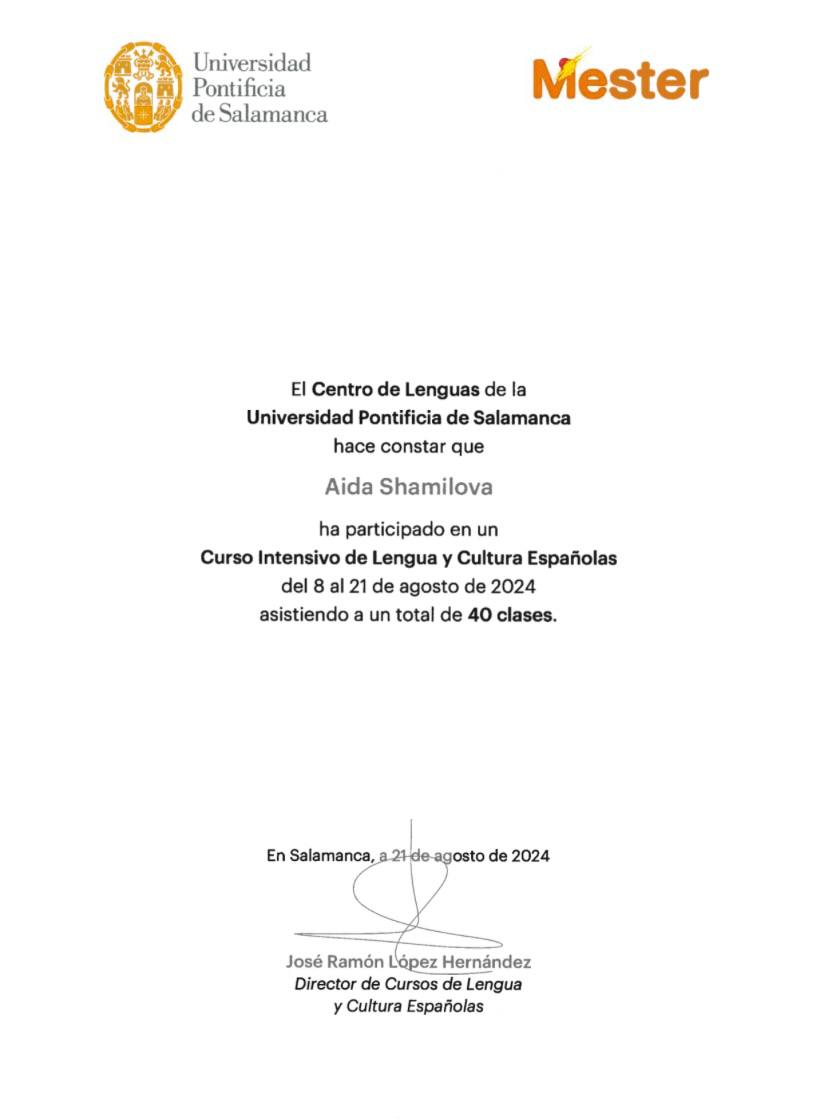 ¡Hola! Меня зовут Аида, и я преподаватель по испанскому языку (индивидуально/в паре/группе от 3-4 человек).