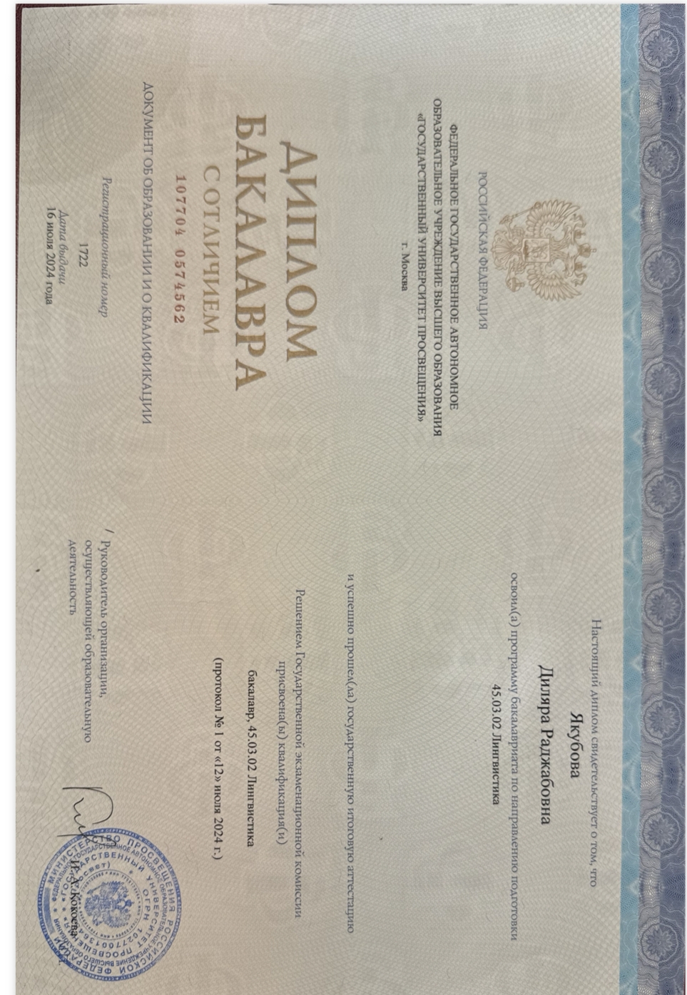 Жила и училась в Москве. Закончила Государственный Университет Просвещения. Являюсь дипломированным преподавателем немецкого и английского языков. С удовольствием занимаюсь со всеми желающими обучиться немецкому и английскому языкам с нуля. Имею опыт общения с носителями языка. Свободно владею разговорной речью.
