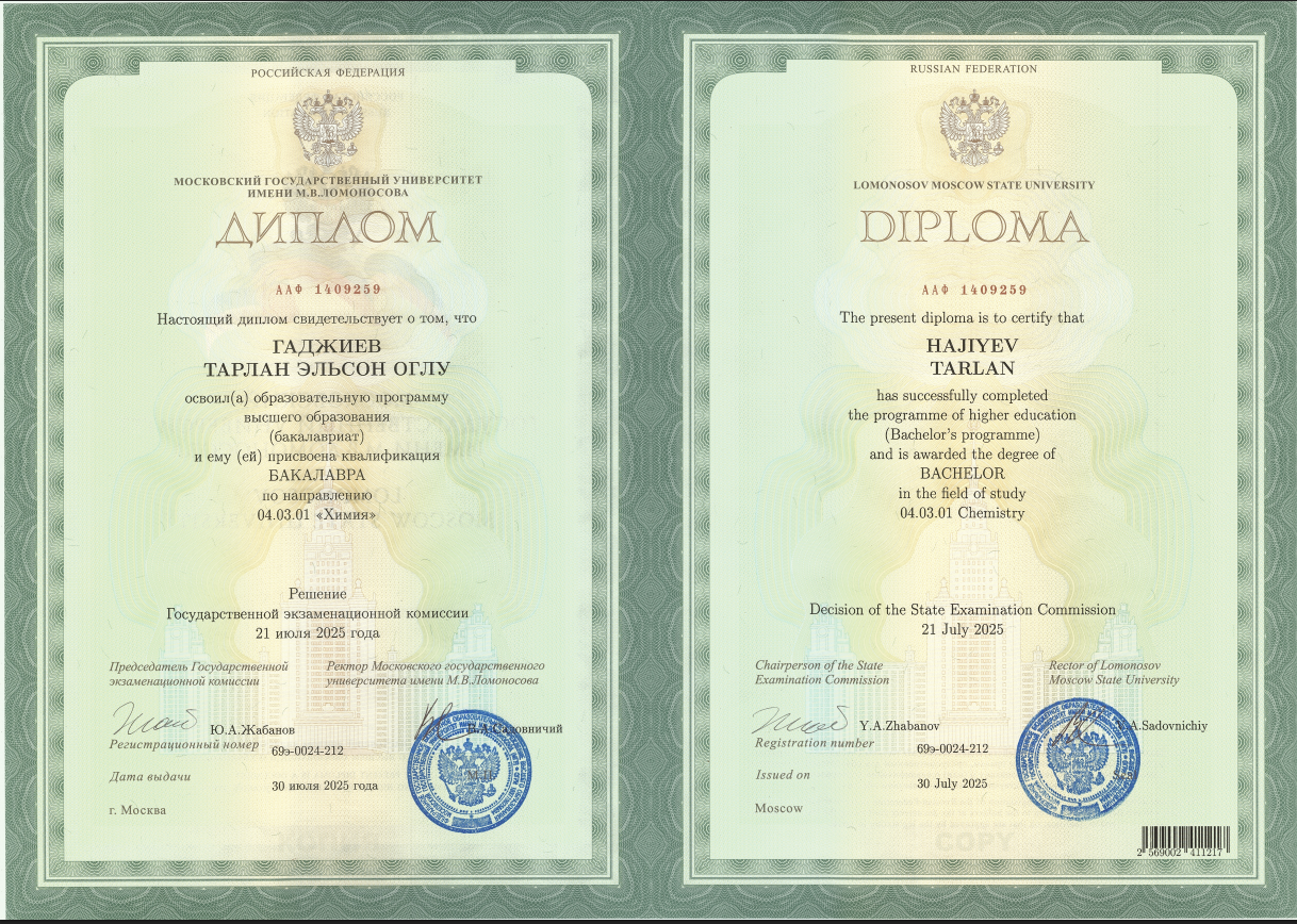 Moskva Dövlət Universitetinin Bakı filialının Kimya fakültəsini bitirmişəm, hazırda isə Bakı Dövlət Universitetində “Kimyəvi kinetika və kataliz” ixtisası üzrə magistratura təhsili alıram.