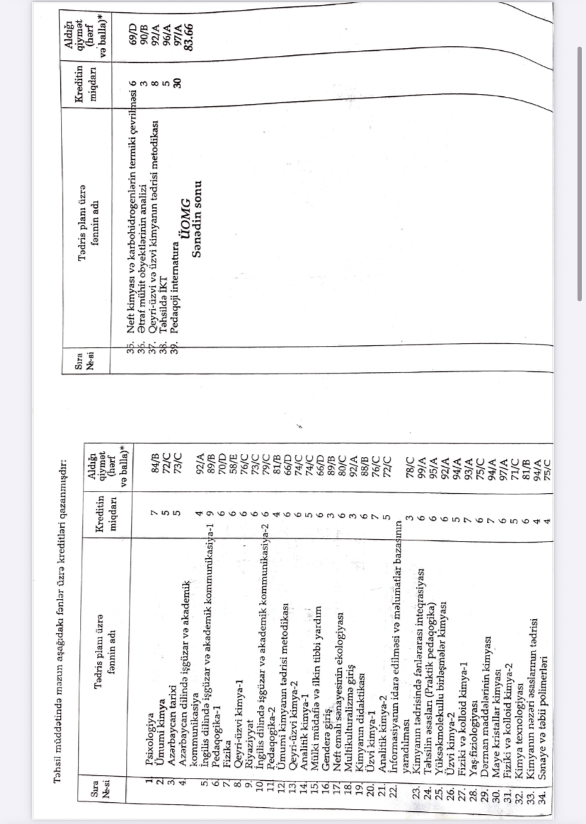 Bakalavr diplomu Bakı Dövlət Universiteti Kimya müəllimi
