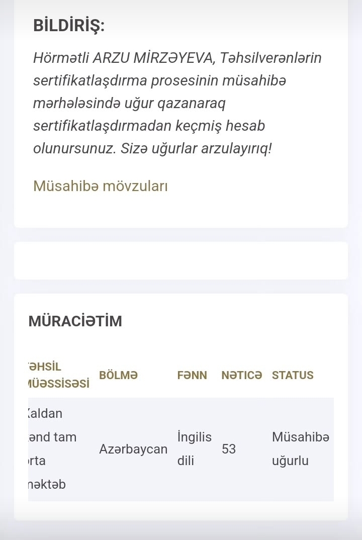 Təhsil Nazirliyi tərəfindən keçirilən sertifikasiya imtahanı nəticəsi