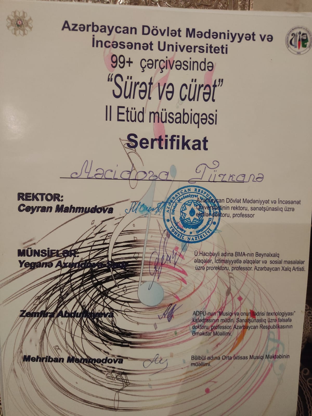 "Sürət və cürət" ll etüd müsabiqəsi Sertifikat
