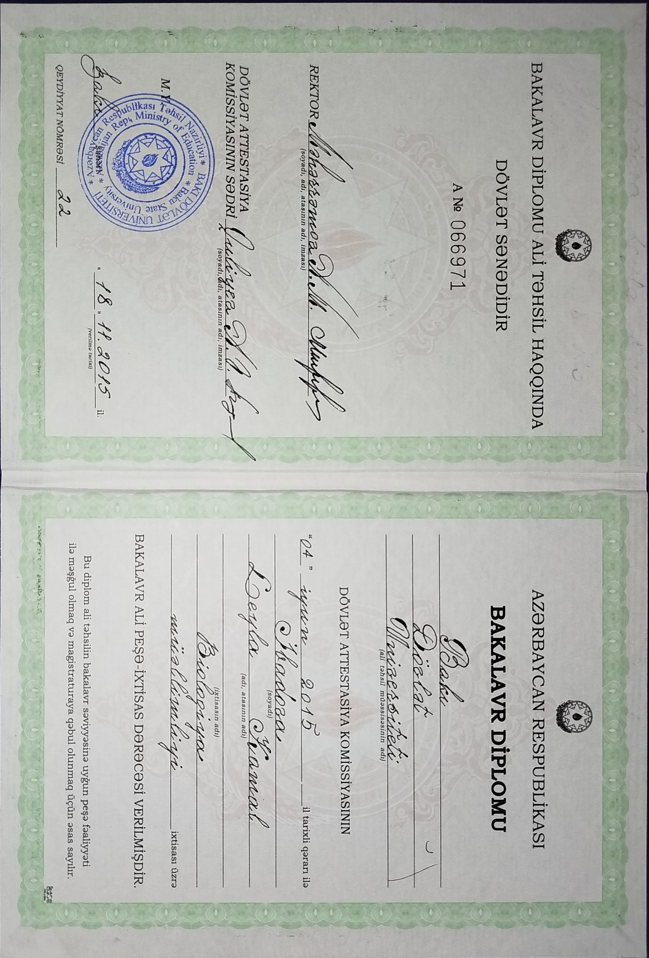 Mən Puçaxova Leyla Kamal bakalavr təhsili Bakı Dövlət Universiteti Biologiya fakültəsinin biologiya müəllimliyi rus bölməsi üzrə bitirmişəm. 10 il iş təcrübəsi.