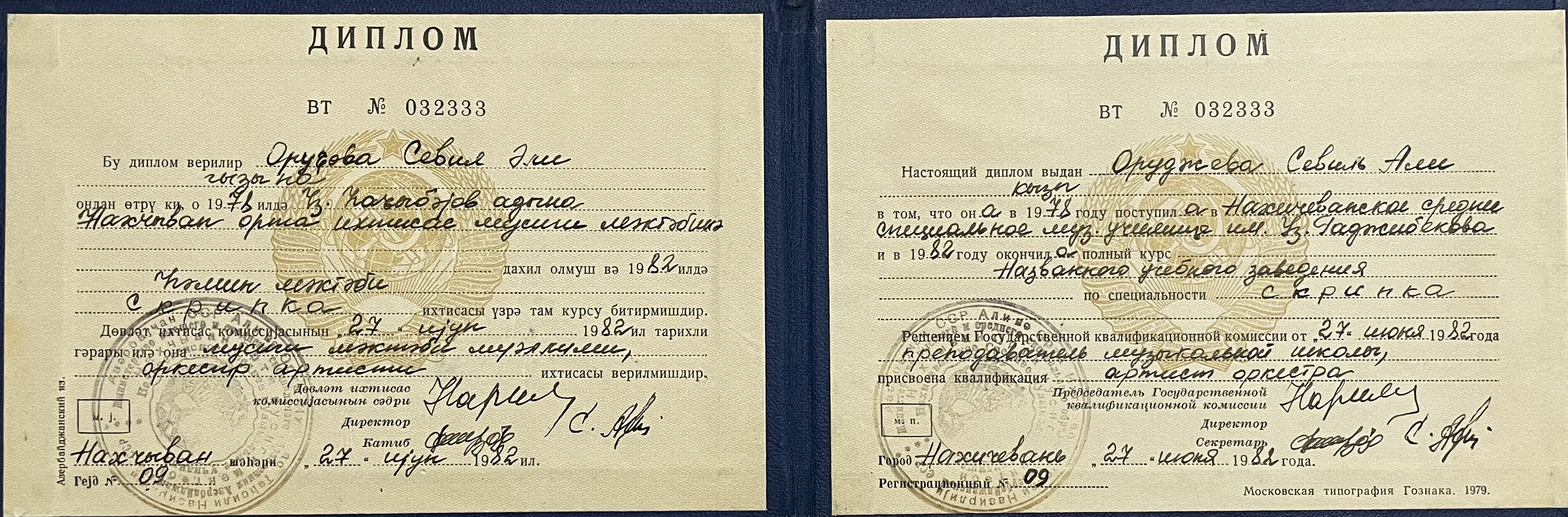 Ü.Hacıbəyli adına Naxçıvan orta ixtisas musiqi məktəbi Diplomu