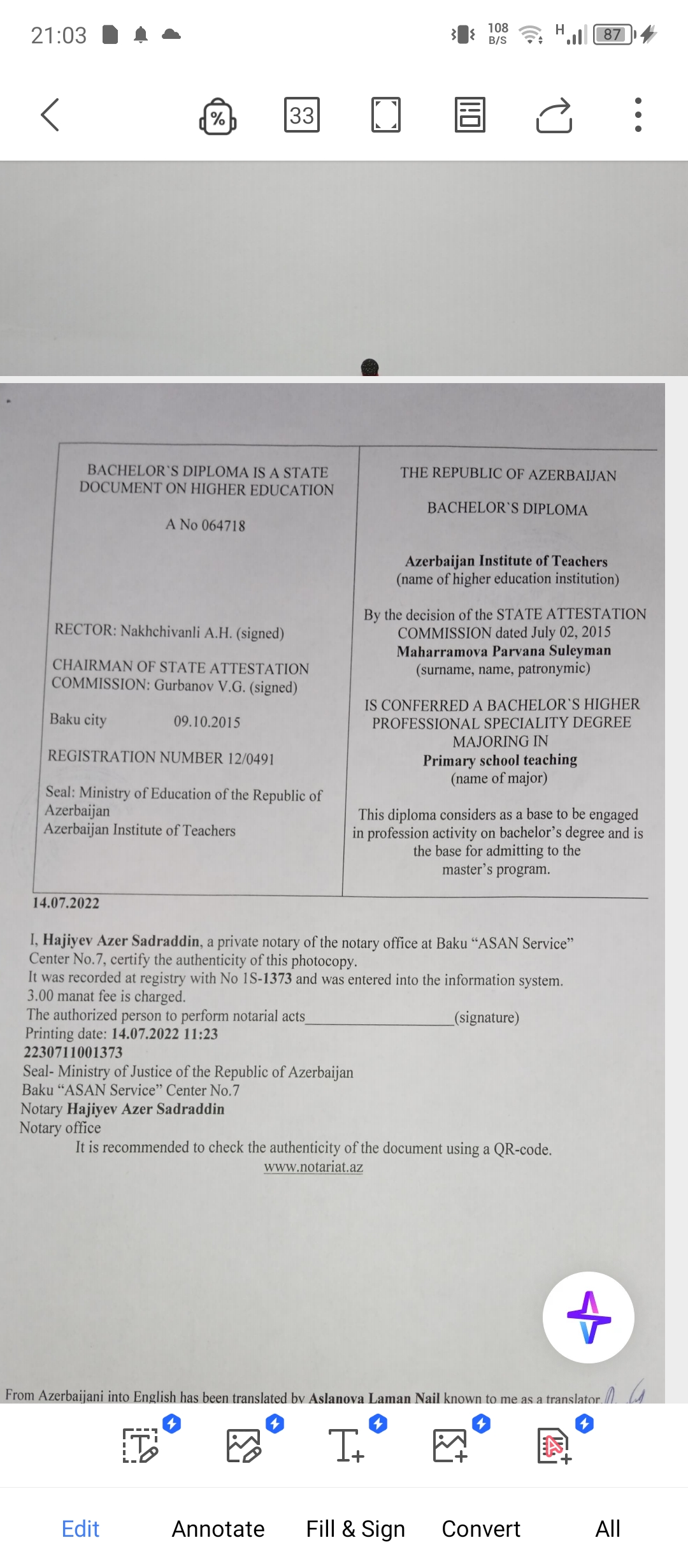 Ibtidai sinif müəllimliyə tədris inglis dilinde