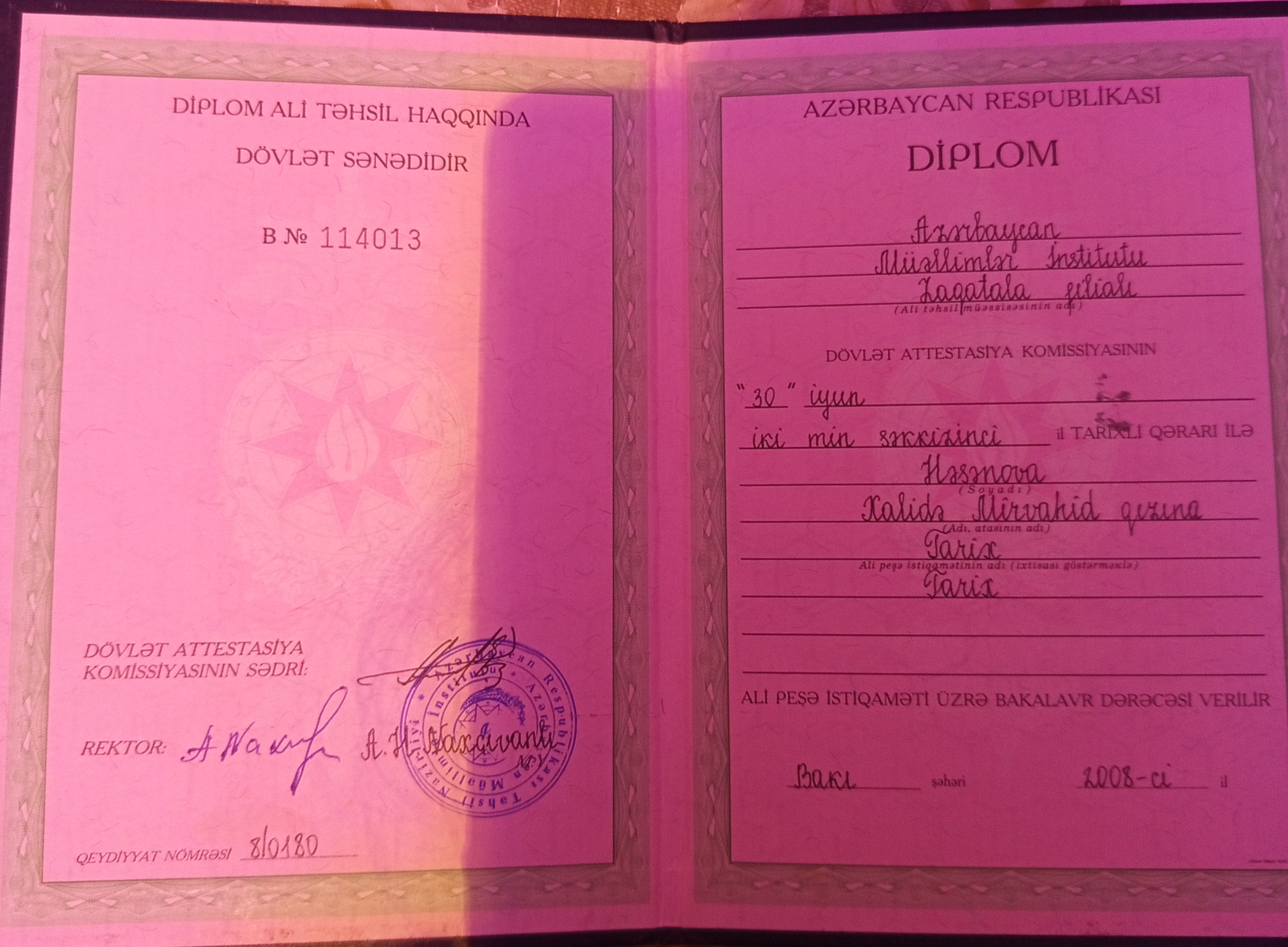 Mən Atayeva Zeynəb Əlisahib qızı Lənkəran Dövlət Universitenin Tarix,hüquq fakultəsini bitirmişəm.Bakı Texniki Kollecində tarix fənnini tədris edirəm. 26 illik pedaqoji tecrübəm var.Kurikulum üzrə təlimçi müəlliməm.İki il ardıcıl olaraq miq imtahanında iştirak etmişəm yüksək bal toplamışam. Bakı Texniki Kollecində tarix müəllimi kimi çalışıram.Miq