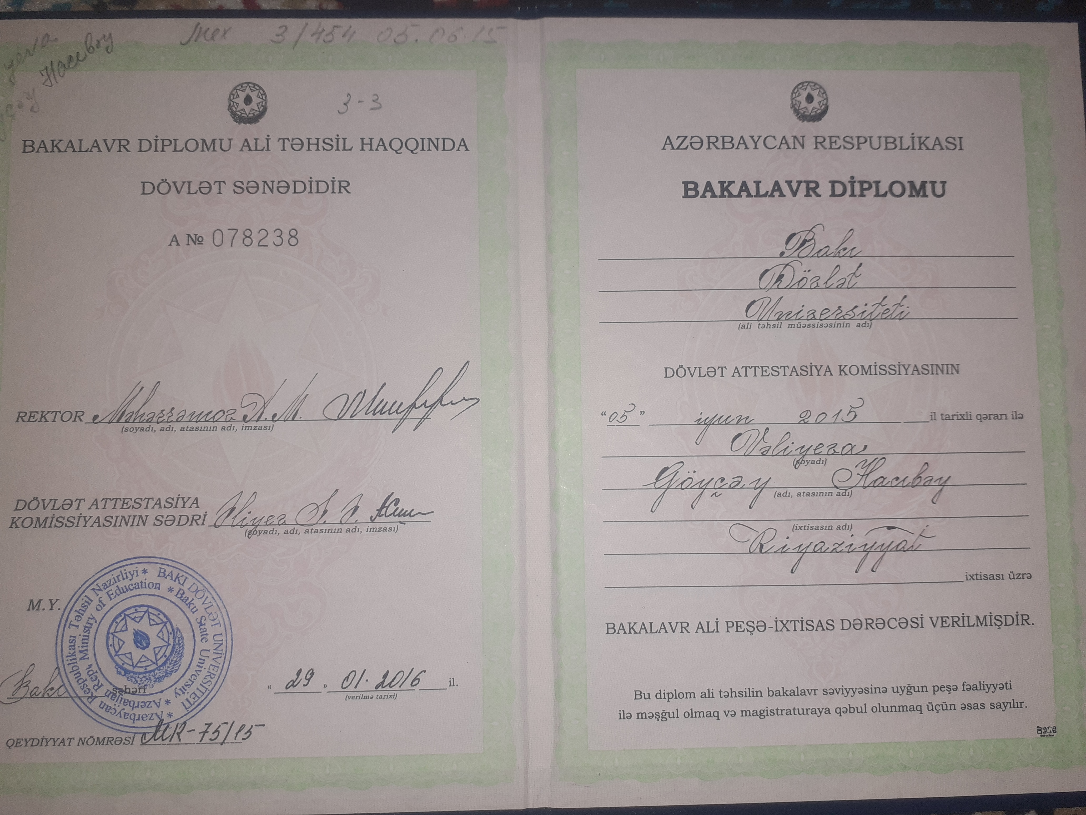 2018 ci ildən Bakı Dövlət Universiteti məzunu