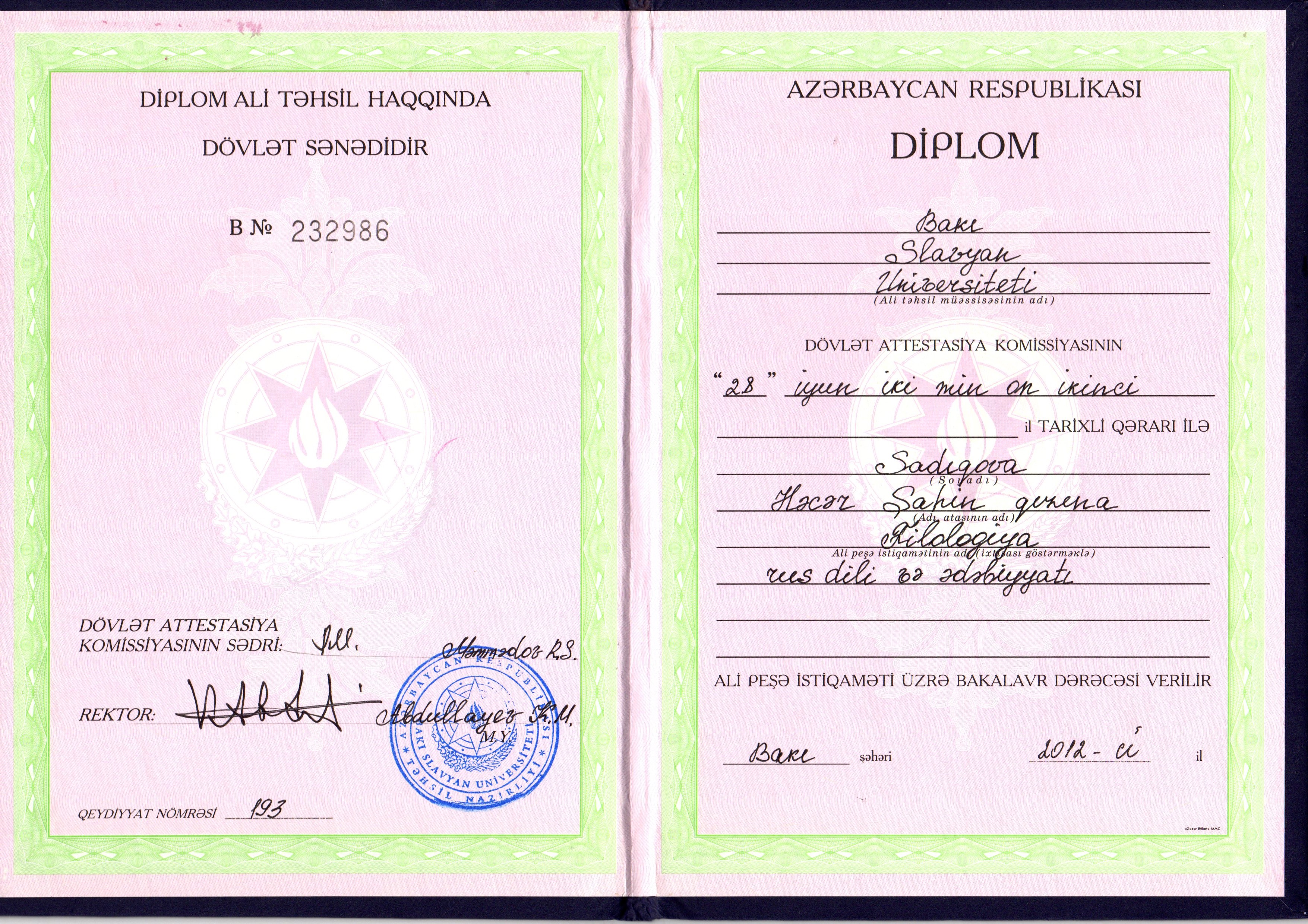 Bakalavr təhsilim Rus dili və ədəbiyyatı ixtisası üzrədir. 23 il ərzində həm rus dili və ədəbiyyatı tədrisi ilə həmdə ki, ibtidai siniflərdə tədrisin təşkili ilə məşğul olmuşam və kifayət qədər təcrübəm var. Bu dövr ərzində peşəkarlıq səviyyəmi yüksəltməkdən ötrü müxtəlif proqramlarda və layihələrdə iştirak etmişəm. Məktəbəqədər təhsil müəsiss